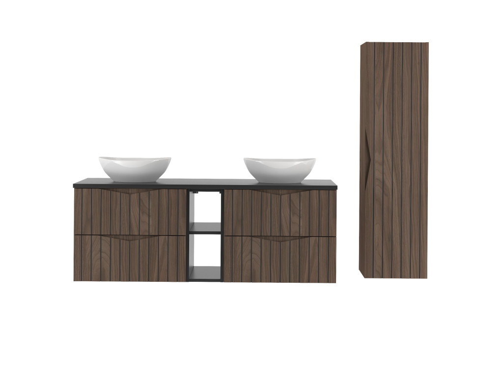 Predstavujeme vám širokú skrinku pod umývadlo s poličkou 02 140 – ideálne riešenie pre modernú kúpeľňu. So šírkou 140 cm, štyrmi zásuvkami a centrálnou poličkou ponúka dostatok úložného priestoru pre všetky vaše potreby. Závesný elegantný dizajn spojený s kvalitnými materiálmi a precíznymi detailmi zabezpečuje pohodlné používanie a nadčasový vzhľad, ktorý dodá vašej kúpeľni šmrnc.