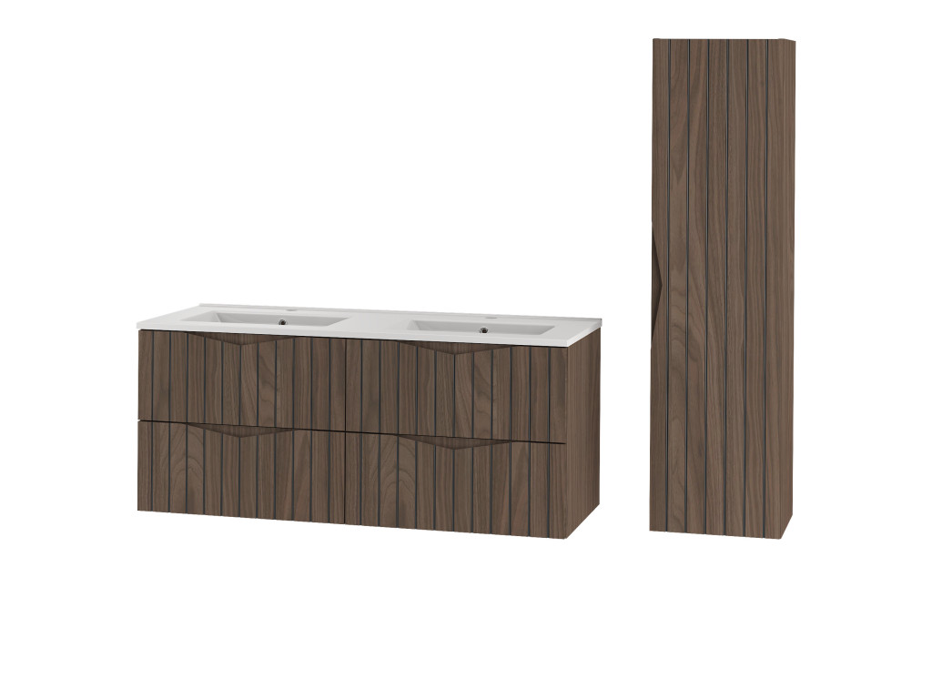 Model širokej kúpeľňovej skrinky pod umývadlo Stesy 02 120 so svojimi štyrmi zásuvkami ponúka praktické úložné riešenie pre všetky potrebné kúpeľňové doplnky, čím pomáha udržiavať poriadok a prehľadnosť. Je ideálnou voľbou pre tých, ktorí potrebujú v kúpeľni dve umývadlá a funkčný nábytok, ktorý zároveň neustále dodáva nádych modernosti a elegancie do vášho interiéru.