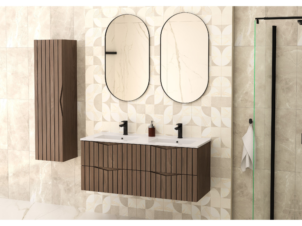 - Elegantná orechová farba: Skvostný dizajn v orechovom prevedení sa hodí do rôznych typov kúpeľní a pridáva priestoru na eleganciu a teplo.