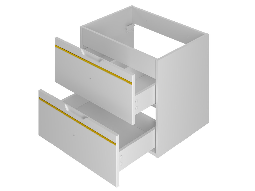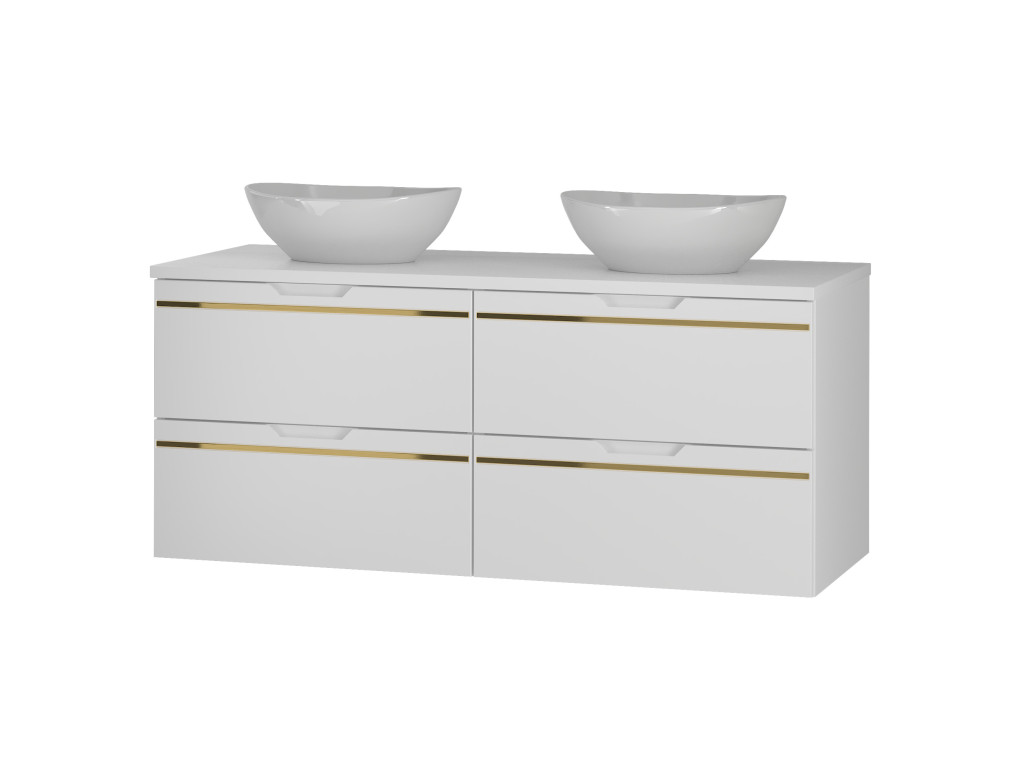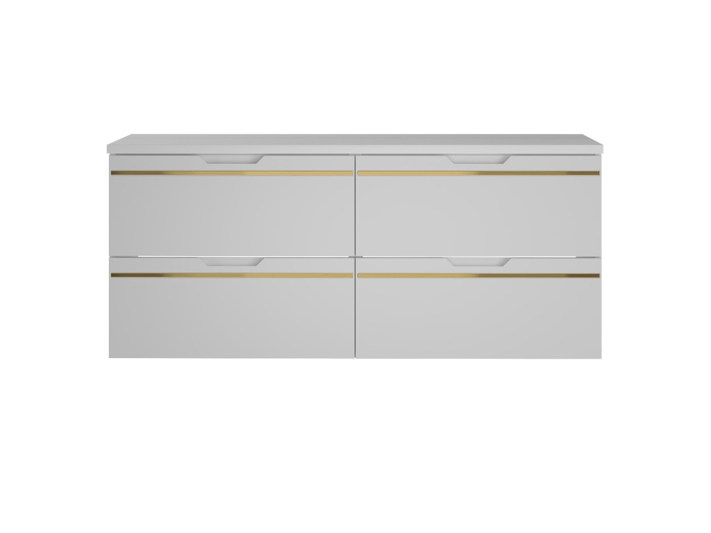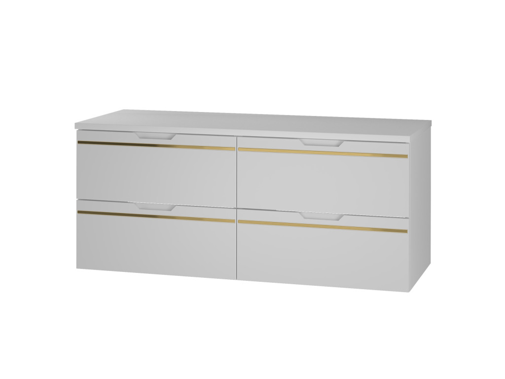Široká skrinka s umývadlom Espero 02 120 je priestranný model so štyrmi zásuvkami, ktoré ponúkajú dostatok úložného priestoru pre všetky kúpeľňové potreby. Charakteristický hladký matný povrch dopĺňa zlatý pás, čím skrinka získa luxusný nádych. Zásuvky sa otvárajú pomocou zafrézovaných úchytov, pričom tiché dovieranie a polovýsuv zabezpečujú pohodlné každodenné používanie. V ponuke sú 3 varianty, vďaka čomu si skrinku môžete ľahko prispôsobiť podľa svojich predstáv.