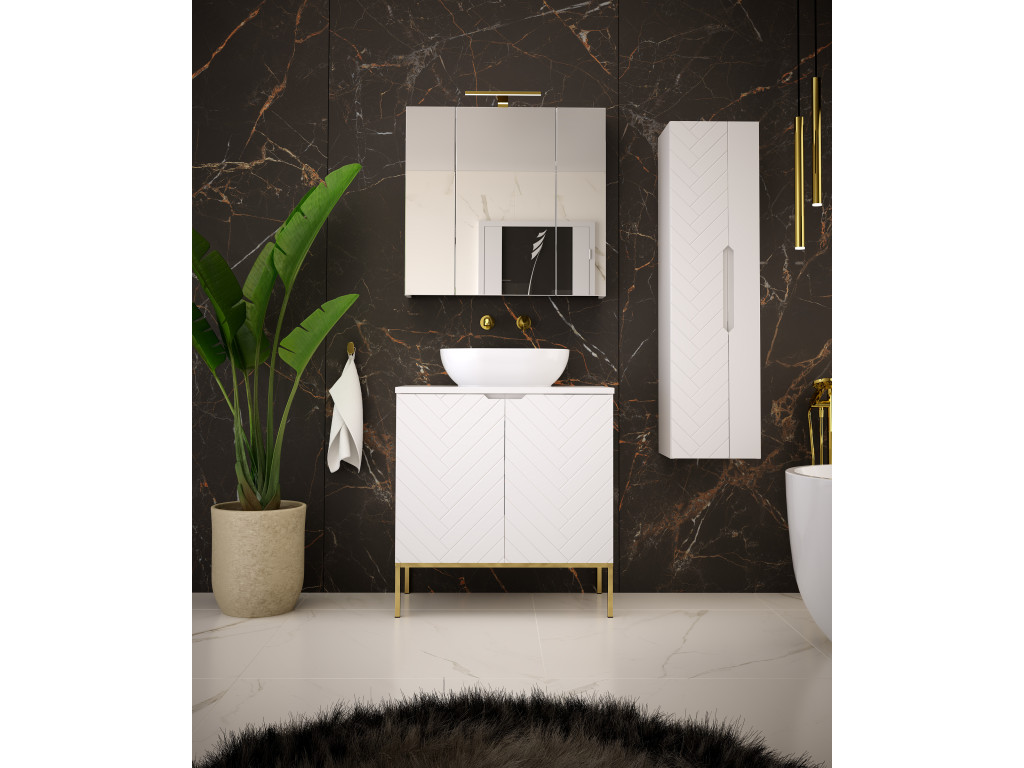 Biela vysoká skrinka Aspen 10 prinesie do kúpeľne čistý a moderný vzhľad s dôrazom na praktickosť. Jej dvojdverová konštrukcia ponúka dostatok miesta na všetky kúpeľňové potreby. Frézovaný stromčekový vzor a minimalistický štýl bez úchytiek vytvárajú nadčasový dizajn. Vďaka tichému dovieraniu poskytuje aj každodenný komfort.
