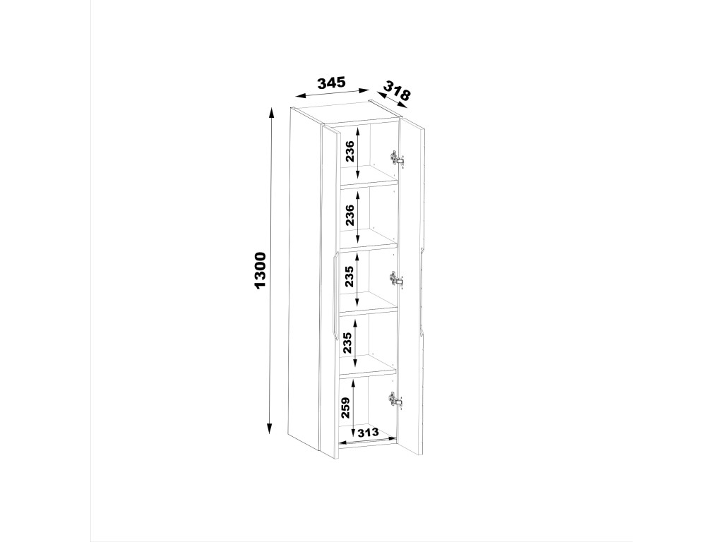 - Dvojdverová vysoká skrinka do kúpeľne ponúka veľkorysý priestor na uloženie toaletných potrieb.