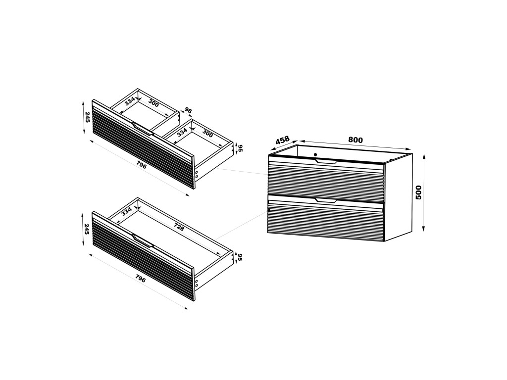 Vyrobená je z laminovanej dosky a MDF frontov, takže sa môžete spoľahnúť na vysokú odolnosť a dlhú životnosť. Dostupné sú 4 varianty: bez dosky, s doskou, so zapusteným umývadlom, s umývadlom na dosku.