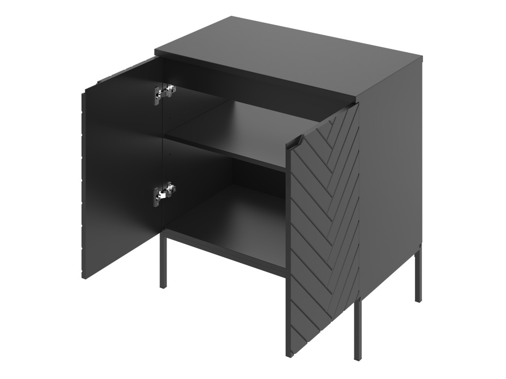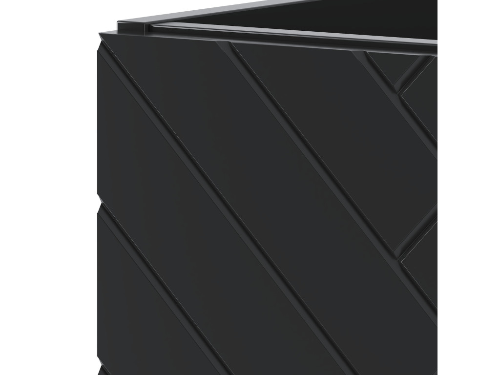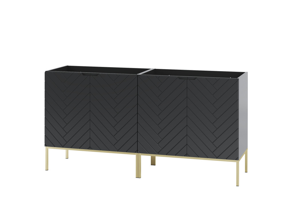 Povrchy sú ošetrené odolnými PVC hranami, čo zvyšuje ich životnosť a kvalitu. Nábytok je dostupný v troch matných farbách: biela, čierna alebo béžová. Pre dokonalé doladenie dizajnu si zákazník môže vybrať aj farbu kovovej podstavy: čierna alebo zlatá, pričom nožičky majú výšku 20 cm, čo nábytku dodáva vzdušný vzhľad.