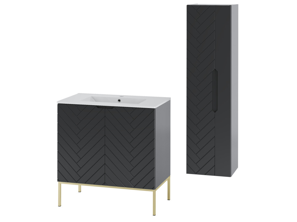 Kúpeľňová skrinka Aspen 08 z kolekcie Aspen ponúka možnosť výberu zo štyroch rôznych zostáv, aby dokonale splnila vaše požiadavky na dizajn a funkčnosť. Každý variant sa vyznačuje moderným frézovaným stromčekovým vzorom na dvierkach a minimalistickým bezúchytkovým dizajnom. Šírka 80 cm a praktické úložné priestory sú základom každého typu zostavy.