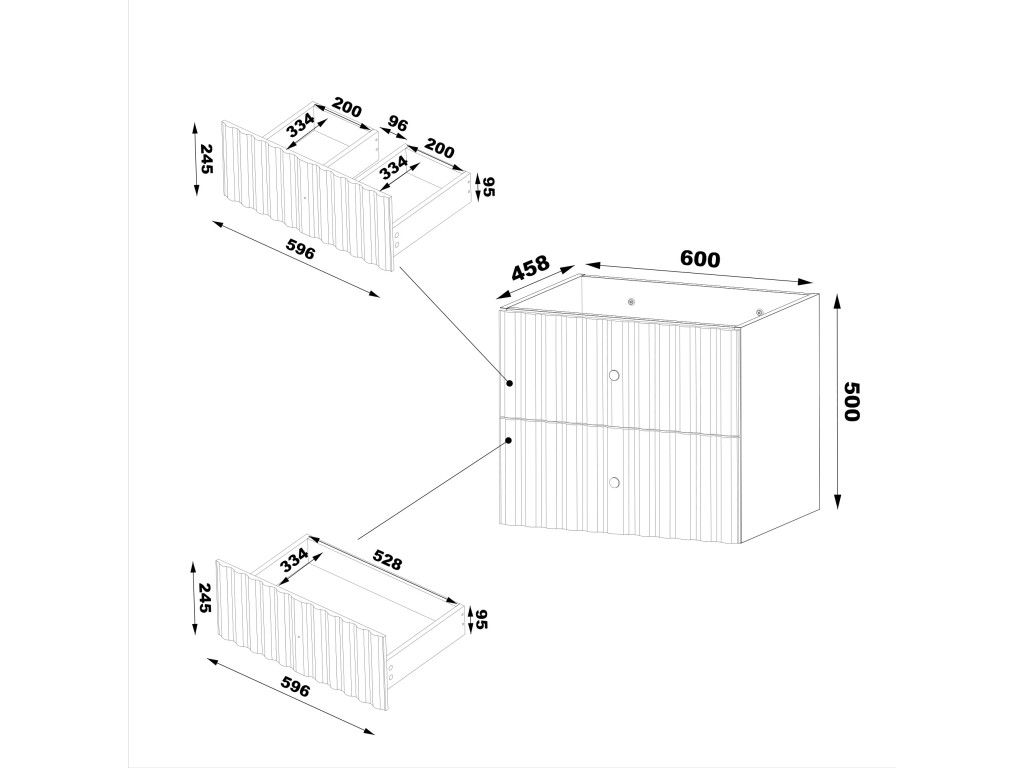 Skrinky sú vyrobené z laminovanej DTD s hrúbkou 16 mm na korpuse a fóliovanej MDF s hrúbkou 18 mm na čelách, čo zaručuje ich vysokú odolnosť vo vlhkom prostredí kúpeľne. Okraje sú ošetrené PVC hranami, ktoré chránia nábytok pred poškodením a vlhkosťou.