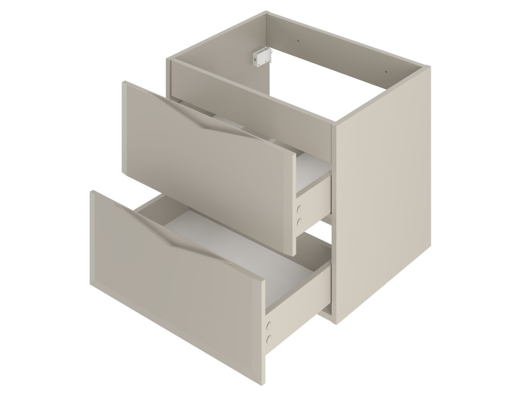 Delica 02 140 ponúka štyri zásuvky s čiastočným výsuvom, tichým dovieraním a bezúchytkovým riešením, vďaka frézovaným úchytom priamo na dvierkach. Navyše je doplnená otvorenou poličkou v strede. Béžové matné prevedenie a elegantne zrezané hrany na frontoch vytvárajú luxusný vzhľad, ktorý sa stane dominantou každej modernej kúpeľne. Skrinka je závesná, čím šetrí priestor a uľahčuje udržiavanie čistoty. Na výber sú dve varianty – s doskou, alebo s umývadlom na dosku.