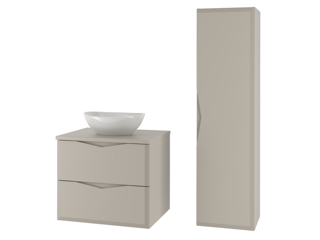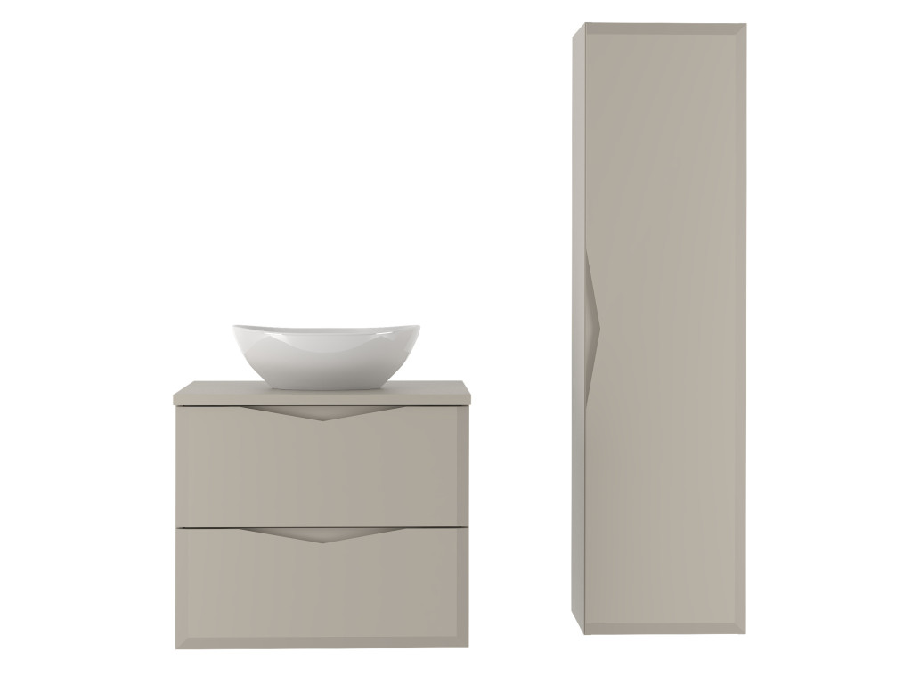 Delica 03 je elegantná vysoká skrinka s jednými dvierkami, ktorá svojím matným béžovým prevedením a luxusne zrezanými hranami na frontoch zaujme na prvý pohľad. Bezúchytkové otváranie vďaka frézovaniu priamo v dvierkach, tiché dovieranie a závesná inštalácia zabezpečujú pohodlné používanie a moderný vzhľad v každej kúpeľni.
