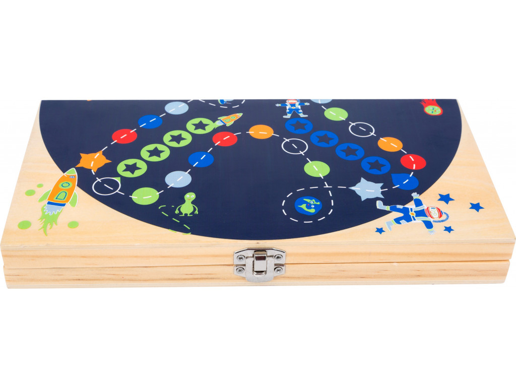 Kto by nepoznal hru Človeče, nehnevaj sa, obľúbenú nielen medzi deťmi, ale aj dospelými. Táto má atraktívny vesmírny dizajn v pastelových farbách. Tradičná spoločenská hra je ideálna na vyplnenie voľného času s kamarátmi či celou rodinou. Ktorým panáčikom budete hrať? Vesmírnymi raketami, mimozemšťanom alebo astronautom?