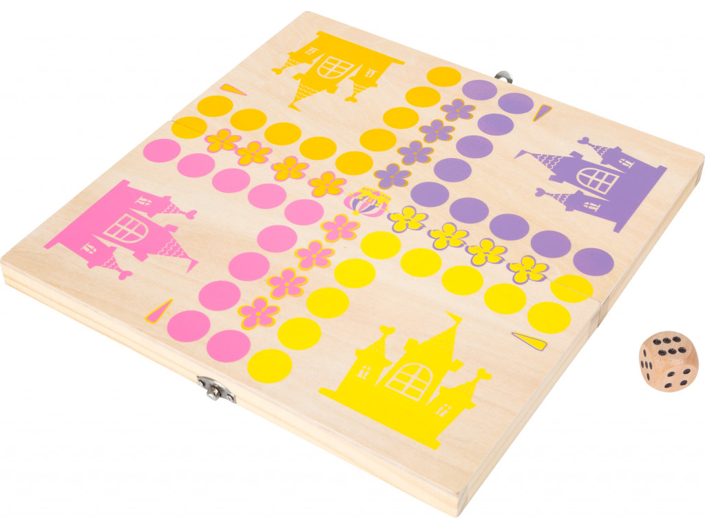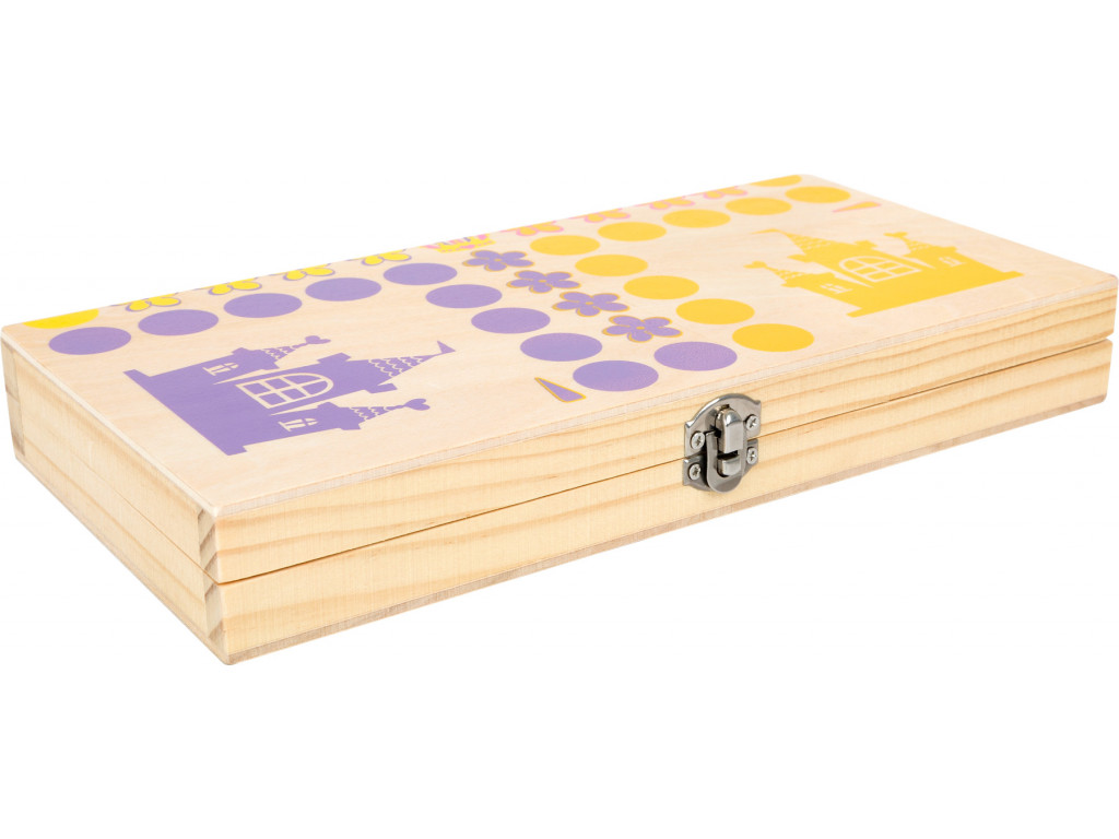 Kto by nepoznal hru Človeče, nehnevaj sa, obľúbenú nielen medzi deťmi ale aj dospelými. Táto má rozkošný princeznovský dizajn v drevenom úložnom boxe, ktorý je zároveň hracou plochou. Hru tak môžete zobrať so sebou kamkoľvek na dovolenku, aby ste si spríjemnili večernú pohodu v kruhu rodiny.