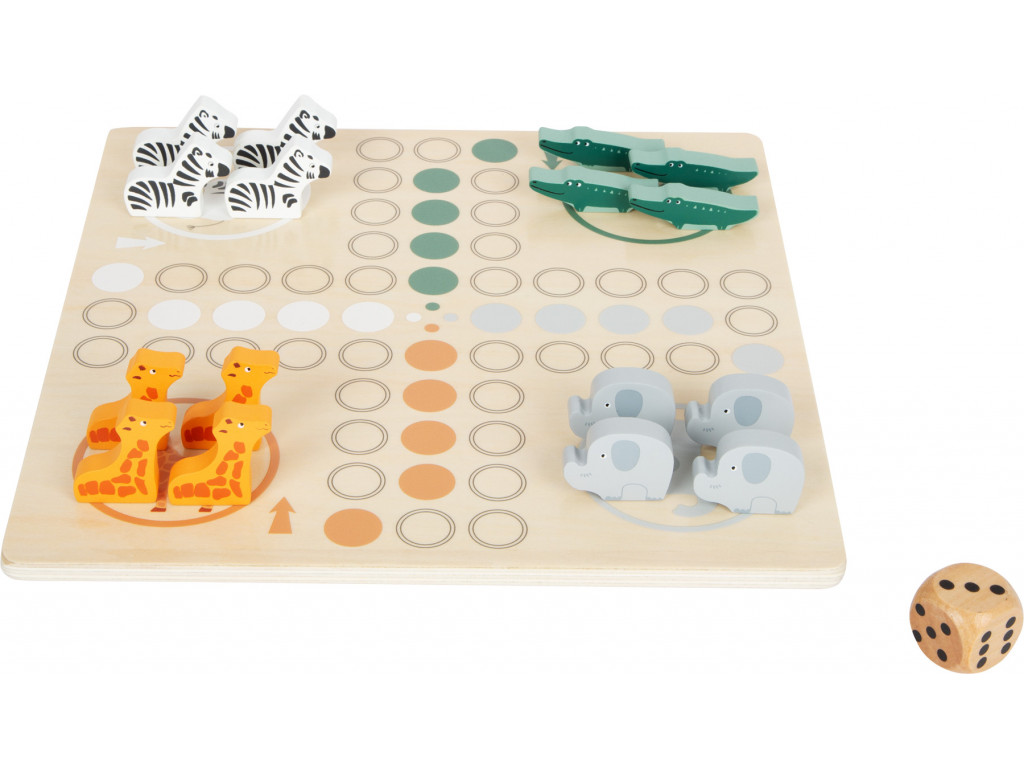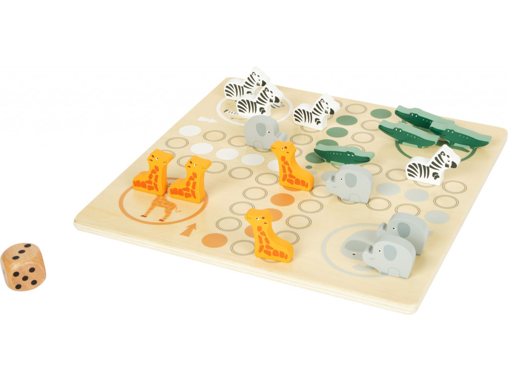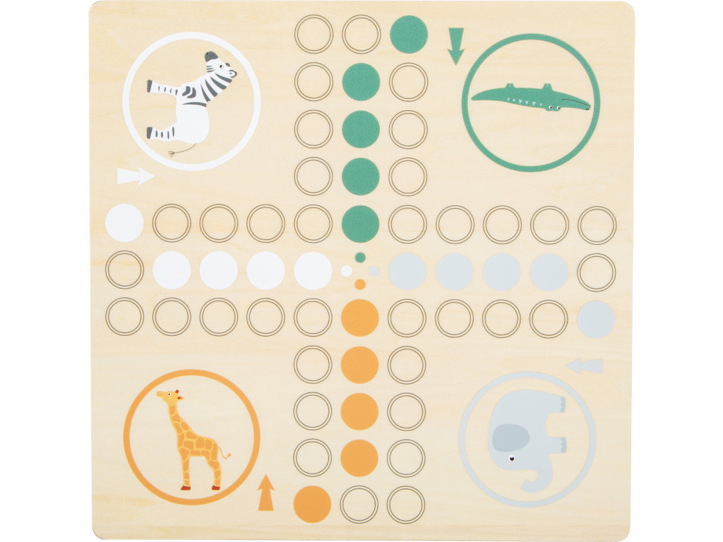 Kto by nepoznal hru Človeče, nehnevaj sa, obľúbenú nielen medzi deťmi ale aj dospelými. Táto má veselý dizajn exotických zvieratie v kombinácii prírodných farieb a dreva. Tradičná spoločenská hra je ideálna na vyplnenie voľného času s kamarátmi či celou rodinou. Ktorým panáčikom budete hrať? Žirafou, zebrou, krokodílom alebo sloníkom?