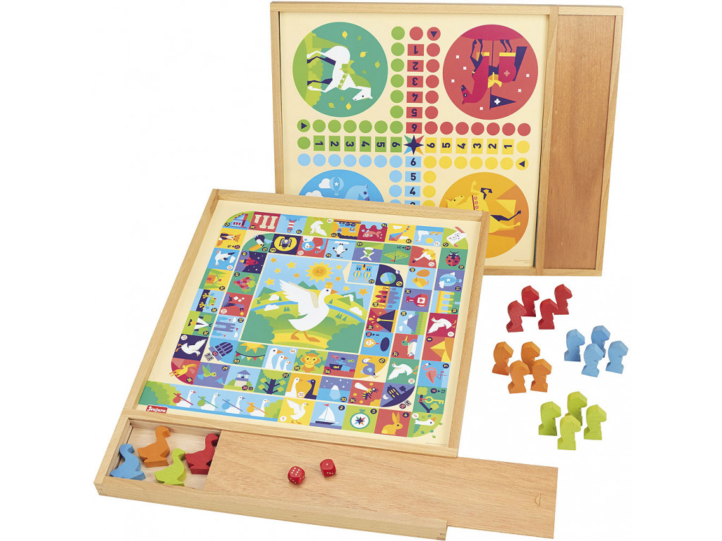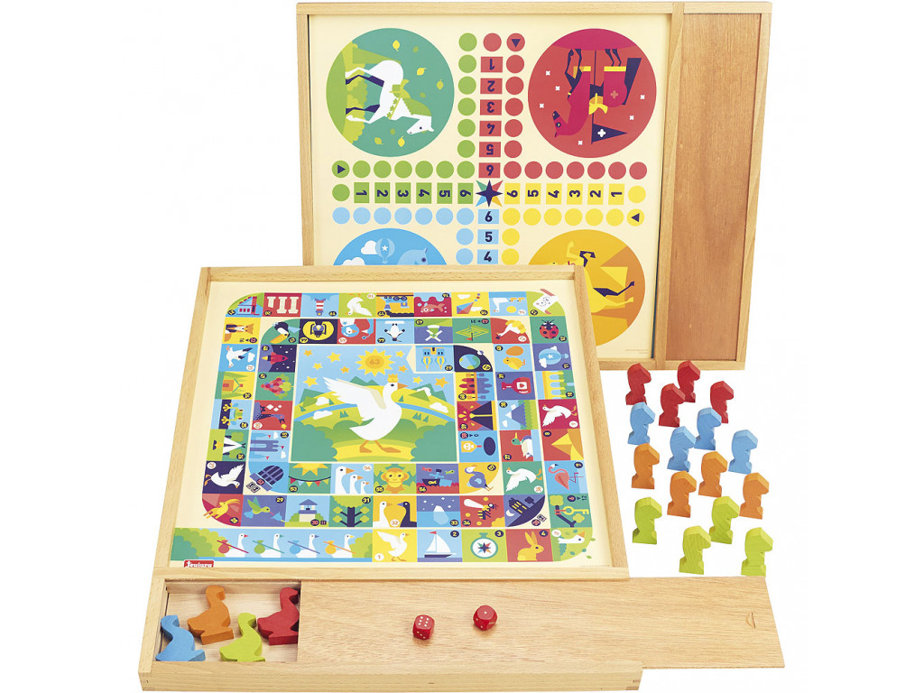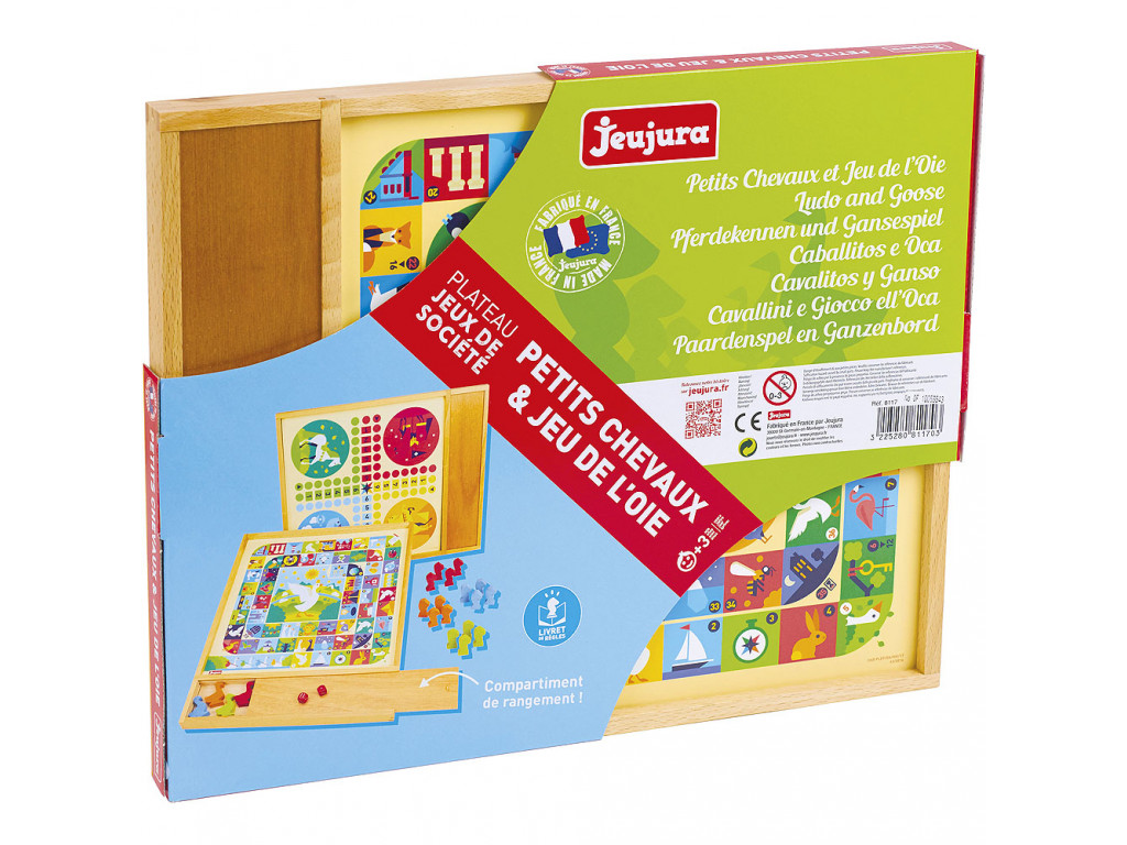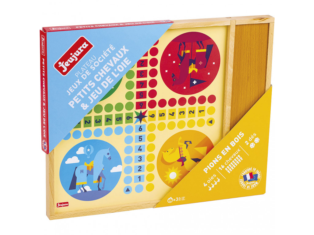 Doska s dvojicou hier. Obsahuje hus a variant Človeče, nehnevaj sa s figúrkami koní. Súprava je vyrábaná vo Francúzsku, z masívneho bukového a borovicového dreva francúzskeho pôvodu. Súčasti sú ošetrené výhradne za použitia farieb a lakov na báze vody.