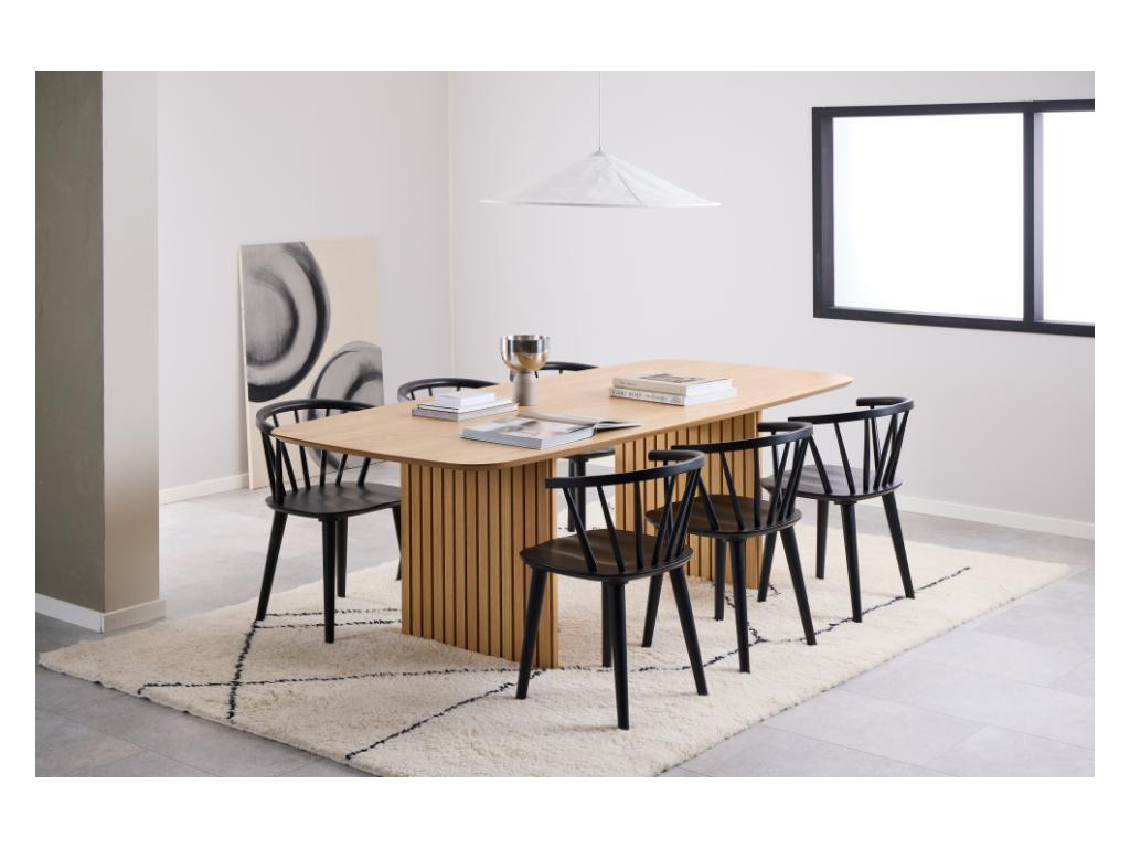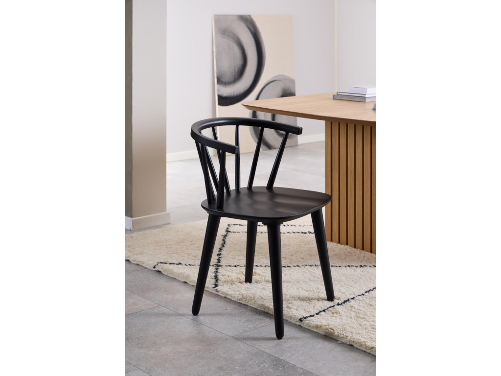 Stolička je dostupná v elegantnej farbe, v prevedení čierna, tak ju ľahko zladíte s akýmkoľvek interiérom – od klasického až po moderný. Stabilná konštrukcia dodáva stoličke pevnosť a odolnosť, zatiaľ čo drevený materiál pôsobí luxusne.