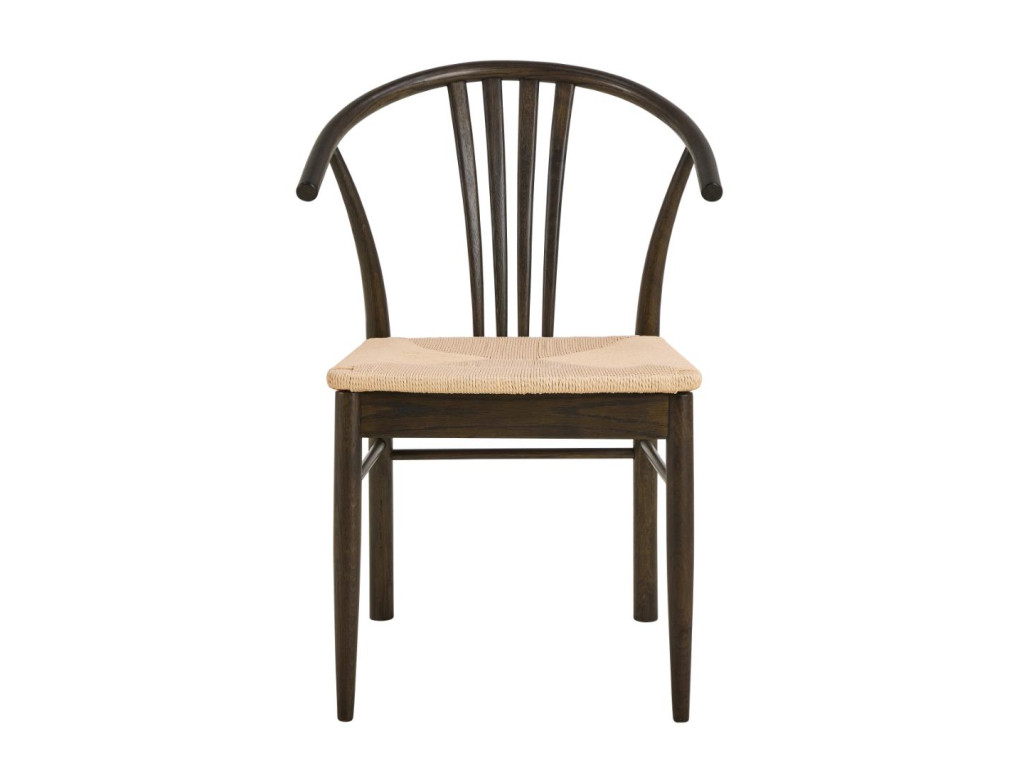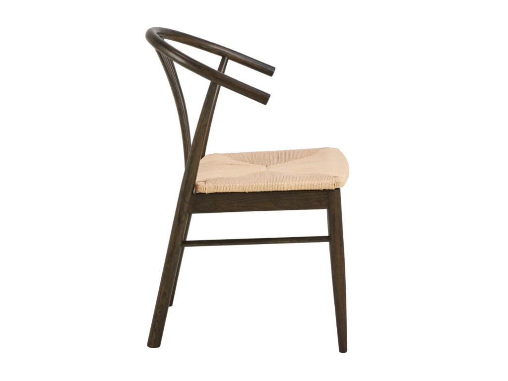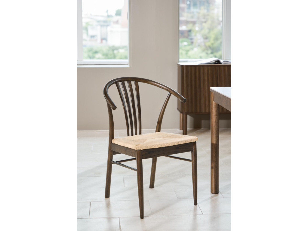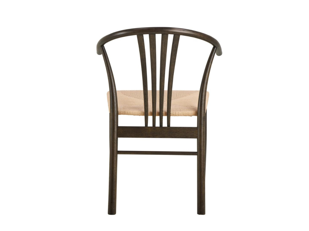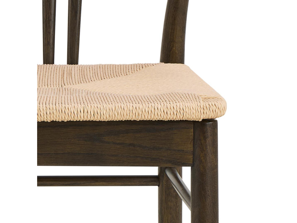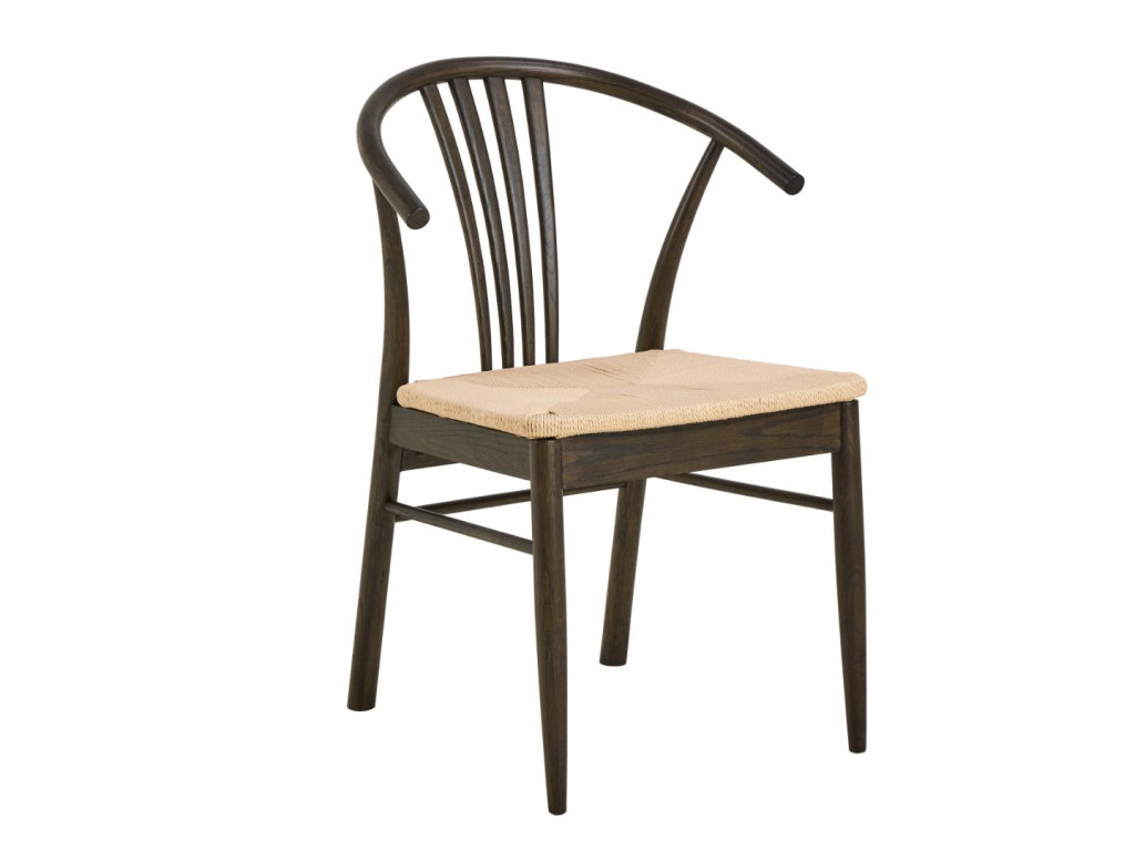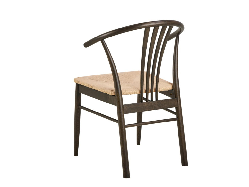 Konštrukcia z masívneho dubového dreva s matným údeným NC lakovaním dodáva stoličke charakter a hĺbku, pričom biela výpletová plocha sedadla tvorí príjemný vizuálny kontrast. Stolička sa skvele hodí do svetlých aj tmavších interiérov a dodáva im elegantný prírodný nádych.