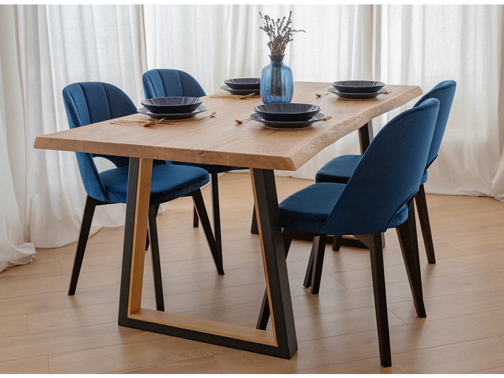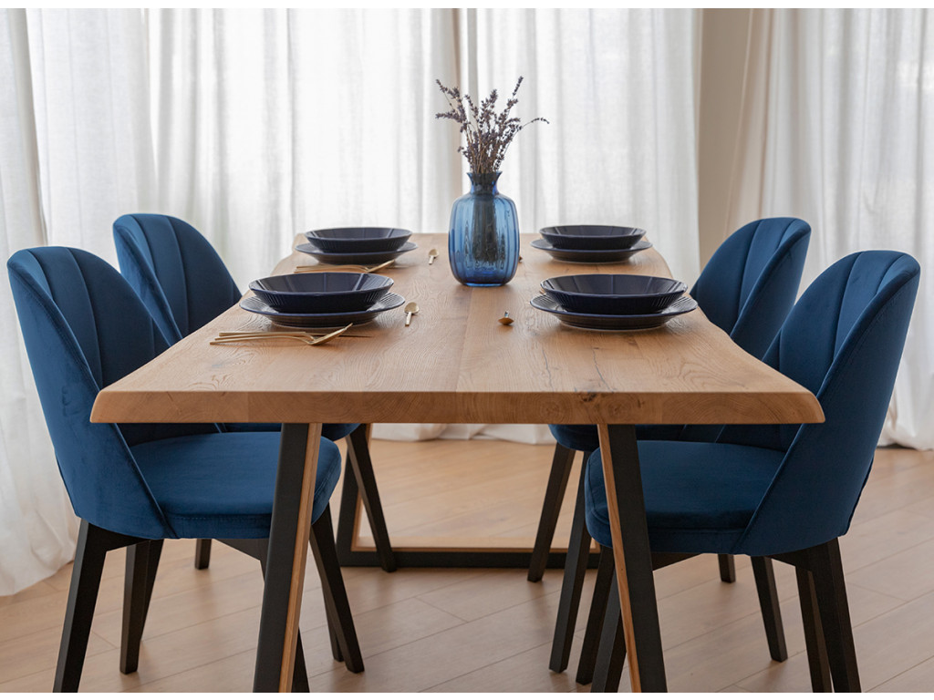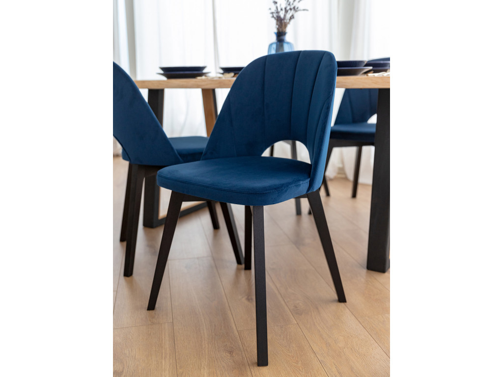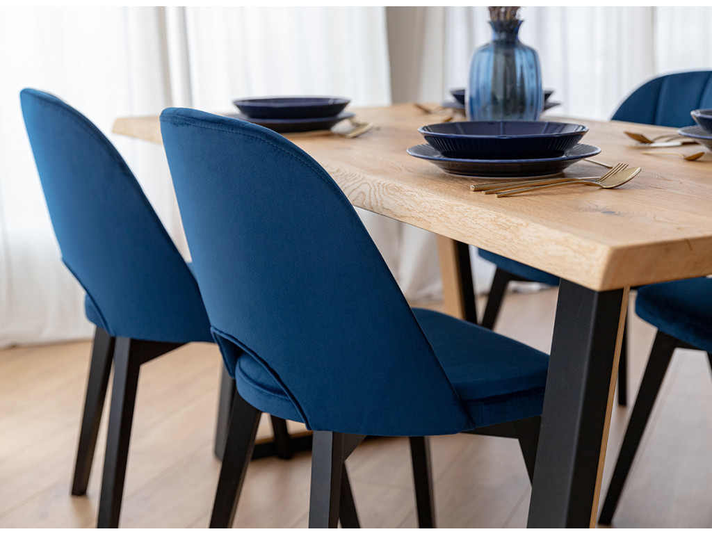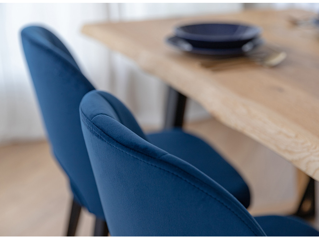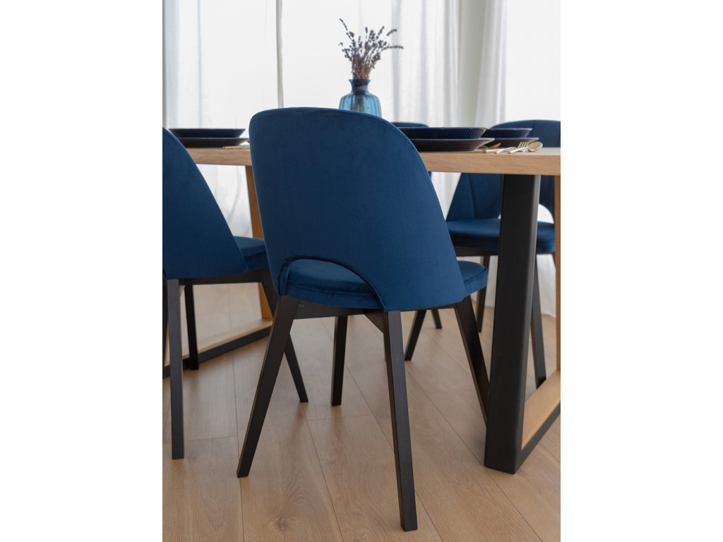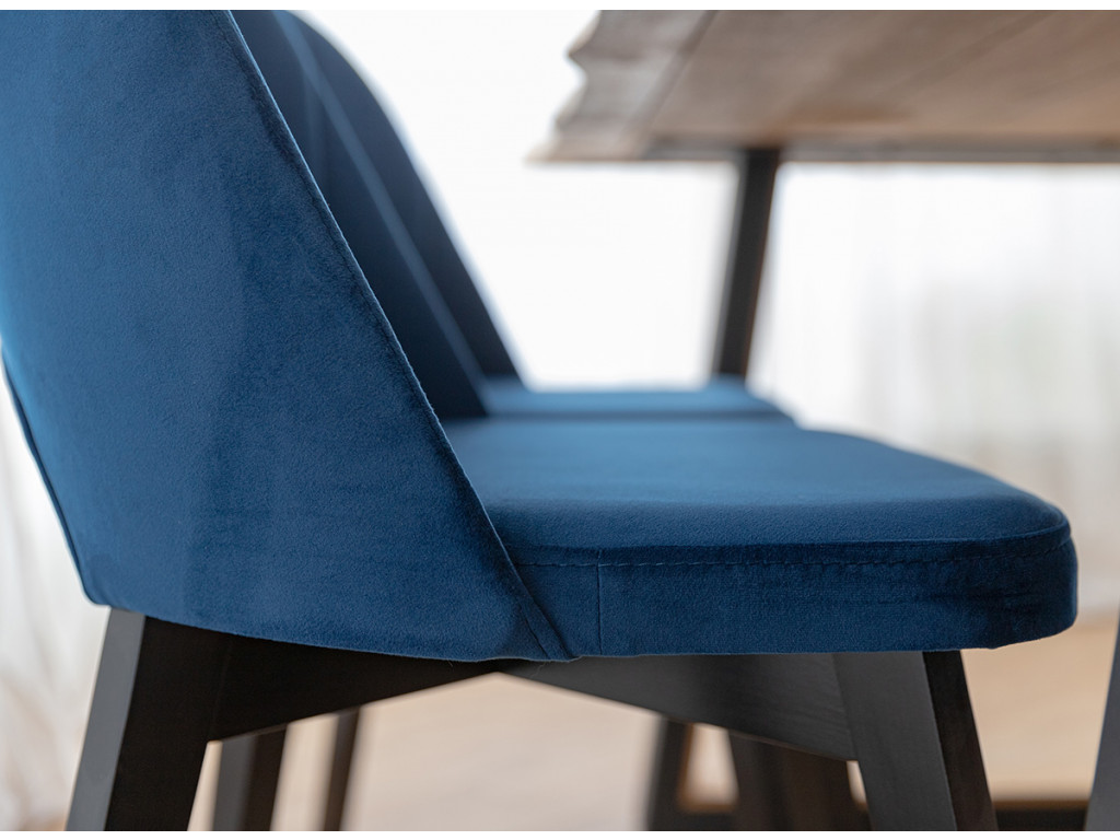 Vychutnajte si harmóniu pohodlia a funkčnosti vo vašom interiéri. Stolička do jedálne Breno upúta pozornosť svojimi čiernymi nohami z bukového dreva, ktoré ostro kontrastujú s modrým čalúnením. O komfortné sedenie sa postará ergonomický tvar sedadla a operadla.