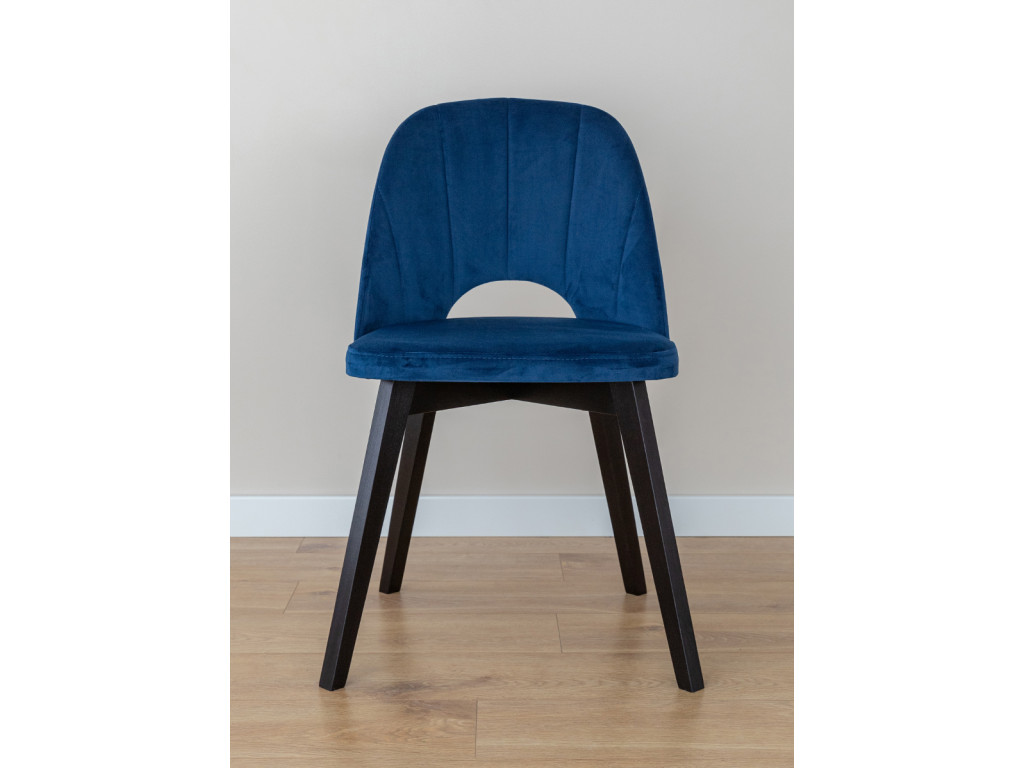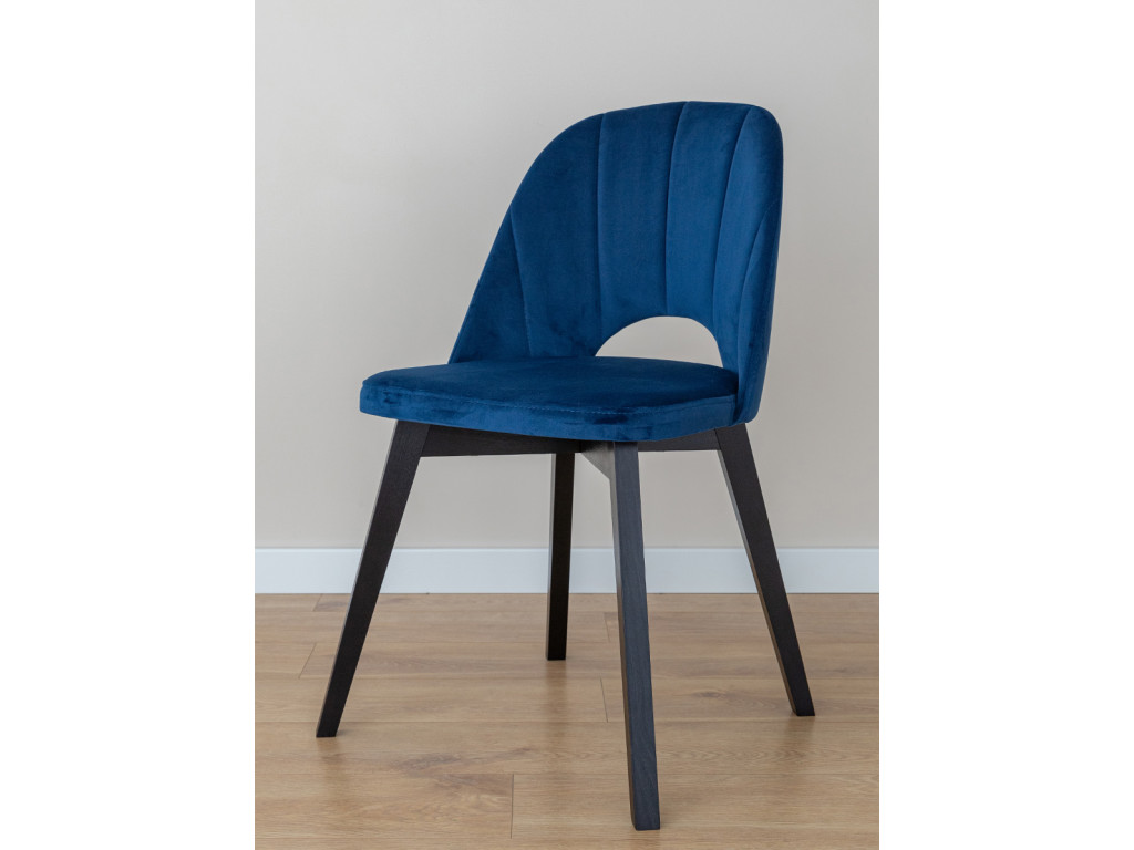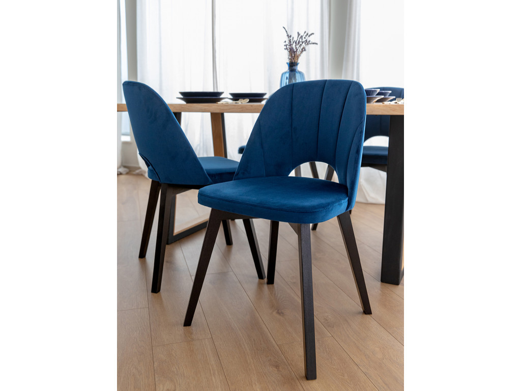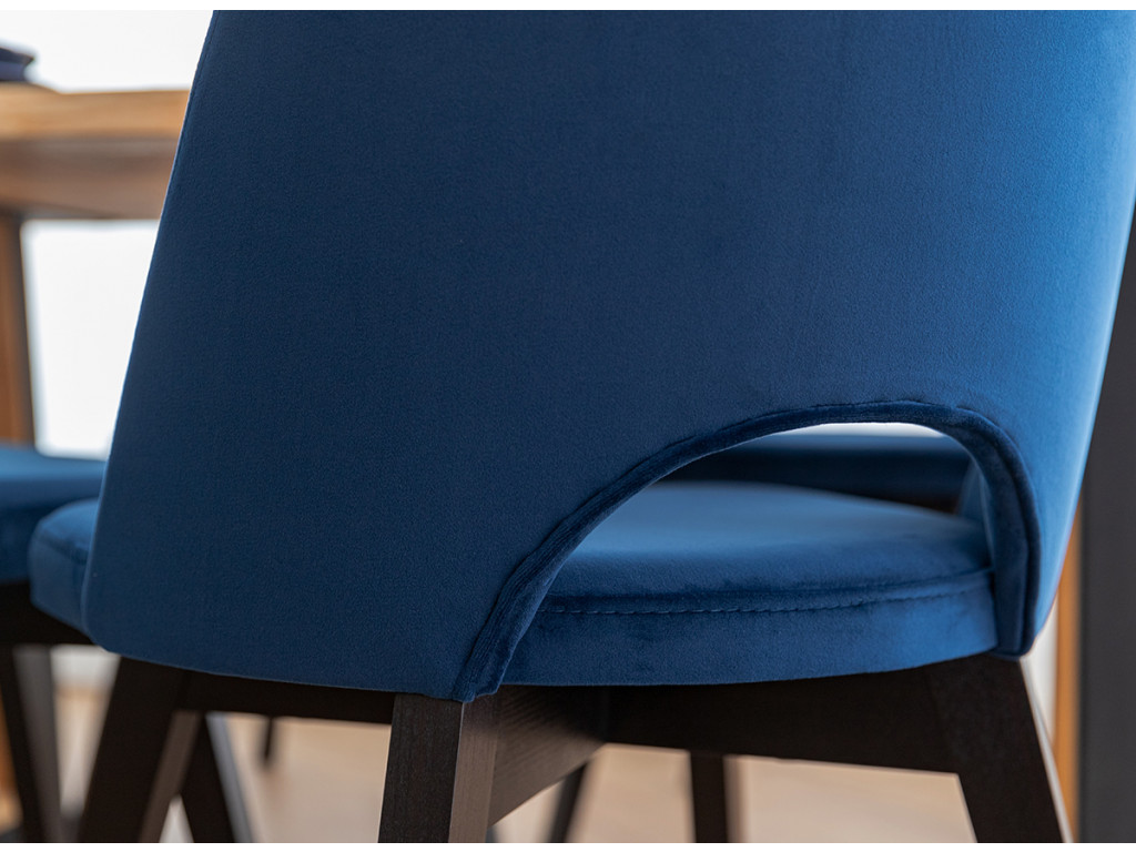 Dizajn stoličky je premyslený tak, aby sa hodil do miestností zariadených od moderného štýlu až po tie s nádychom glamouru. Vizuálna ľahkosť je dosiahnutá štíhlymi nohami z čierneho bukového dreva. Jemný lesk velúru Riviera 81 na čalúnení dokresľuje osobitý vzhľad nábytku.
