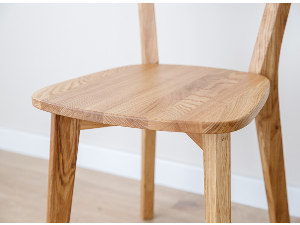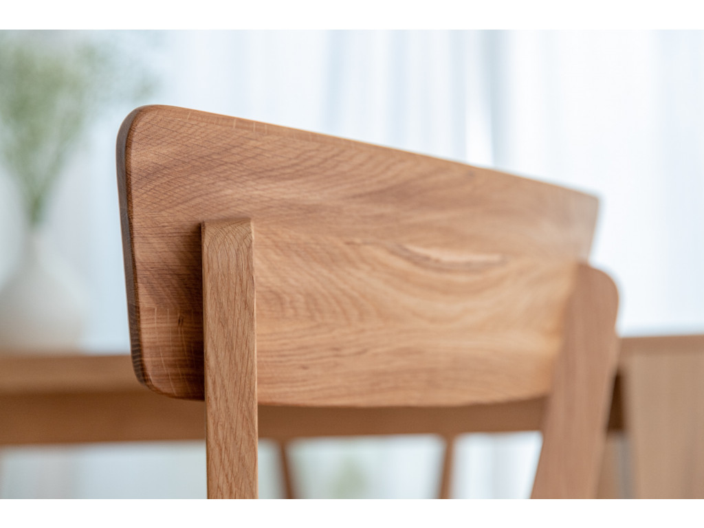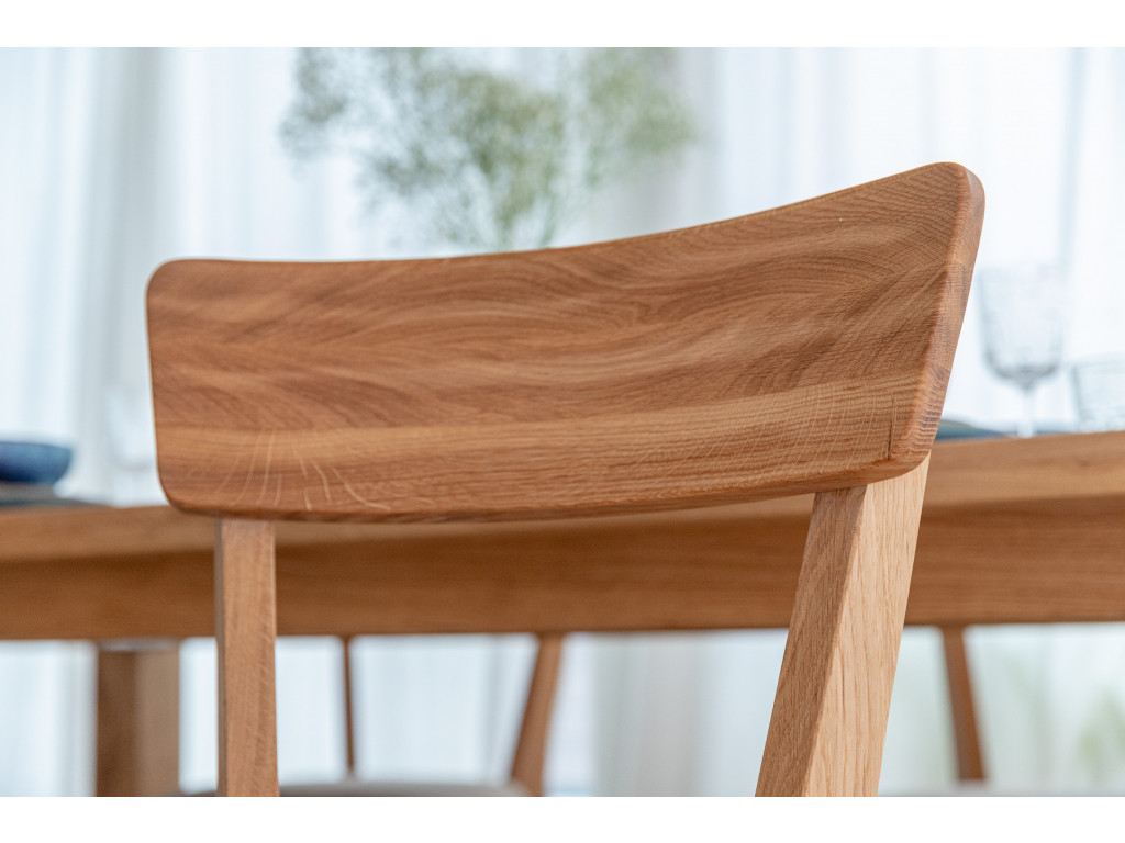 Dubové drevo je výnimočné pre svoju trvácnosť a odolnosť voči poškodeniu. Povrchová úprava (olejovanie) dodá stoličke prírodný nádych. Vďaka tomu sú na stoličke viditeľné prirodzené kresby dreva.