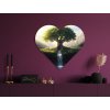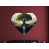 Obraz v tvare srdca zachytáva Strom života s bohato rozvetvenými koreňmi, ktoré splývajú s vodopádom stekajúcim z útesu. V pozadí sa rozprestierajú hory a zelená krajina, čo vytvára pokojnú a harmonickú atmosféru. Červené pozadie kontrastuje s prírodným motívom a zvýrazňuje emóciu obrazu.