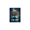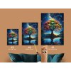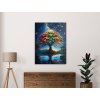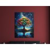 Farebný strom života na pozadí hviezdnej oblohy pôsobí ako most medzi vesmírom a zemou. Jeho silueta sa zrkadlí vo vodnej hladine, čím vzniká pokojná a snová kompozícia. Obraz prináša do priestoru inšpiráciu, ticho a duchovný rozmer.