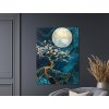 Zlatý strom s bielymi kvetmi sa rozprestiera na hlbokom mramorovom pozadí, prežiarenom veľkým zlatým mesiacom. Tyrkysové a modré odtiene prinášajú hĺbku, zatiaľ čo zlaté akcenty vytvárajú luxusný kontrast. Obraz pôsobí mystickým a vyváženým dojmom, ideálny ako elegantná stena do spálne či obývačky.