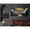 Zlatý strom v centre triptychu pôsobí ako harmonický stred prírody a energie. Pod ním padá zlatý vodopád, obklopený tmavými a svetlými horskými masívmi. Dramatický kontrast Stromu života a zlaté akcenty vytvárajú vizuálnu symfóniu pokoja a sily.