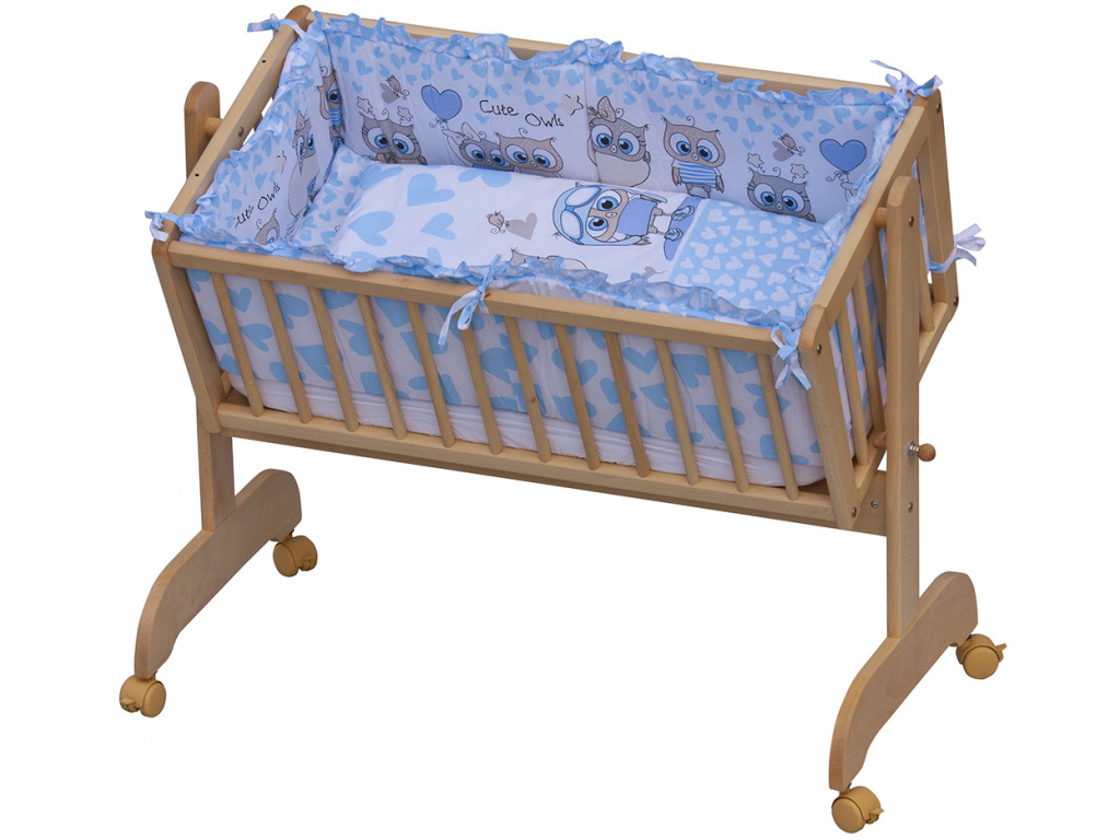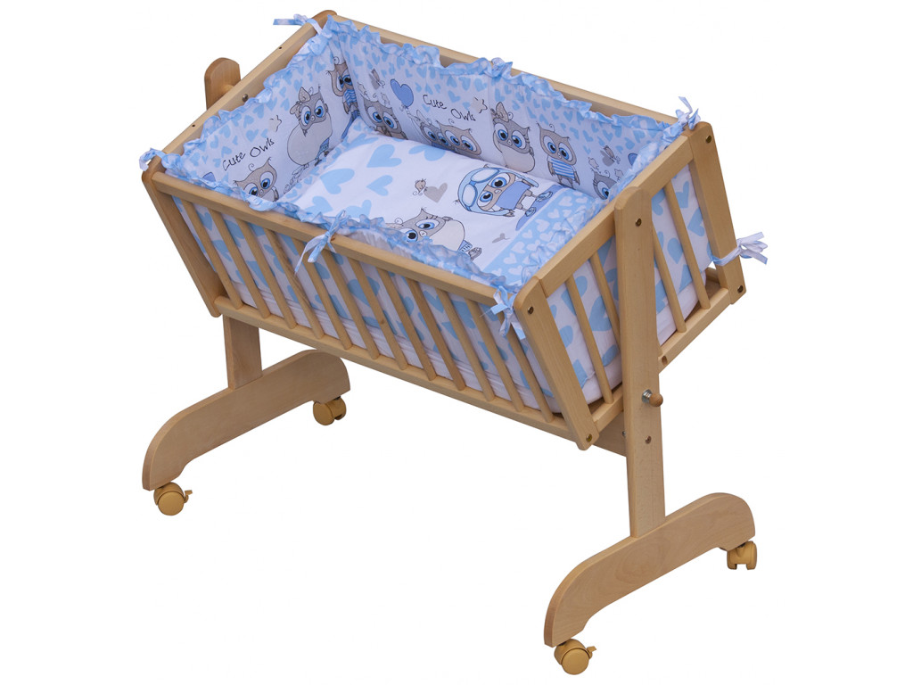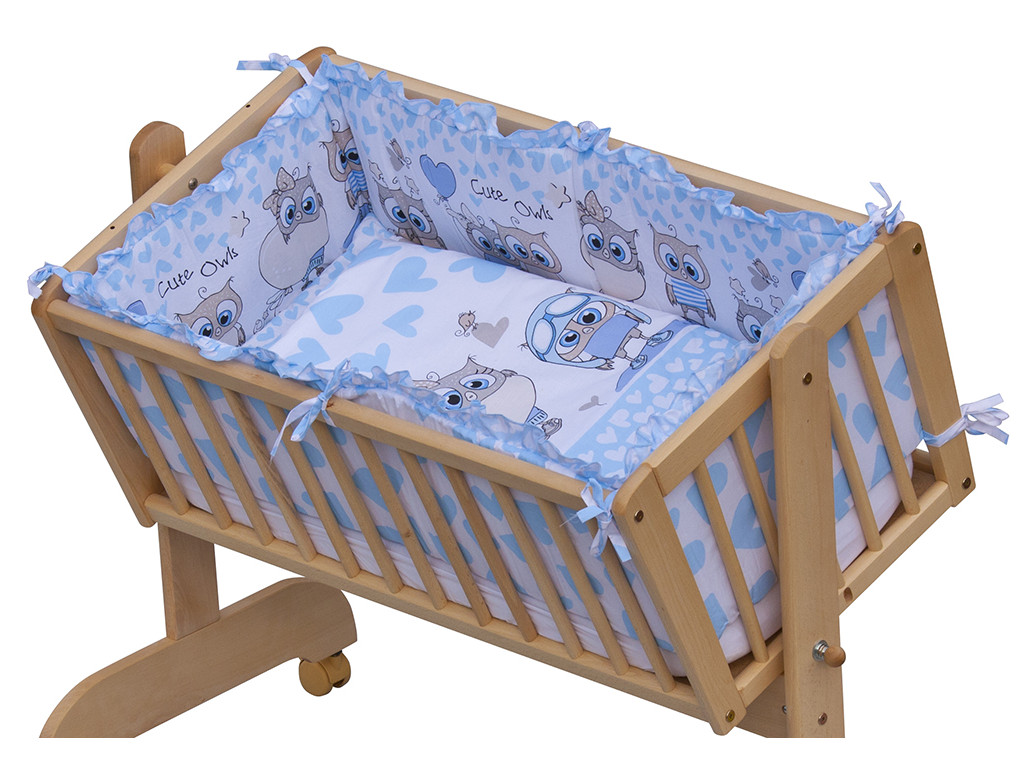 Zaobstarali ste si pre bábätko detskú kolísku a potrebujete do nej vankúšik či perinku? Kúpte si bavlnenú súpravu do kolísky, ktorá bude jej skvelým doplnkom. Okrem vankúša a perinky budete mať aj bavlnené obliečky modrej farby s motívom sovičiek a detskú plachtu. A aby toho nebolo málo v súprave je aj ochranný mantinel, ktorý ochráni dieťatko pred úrazom či prievanom, ktorý upevníte o rám kolísky.