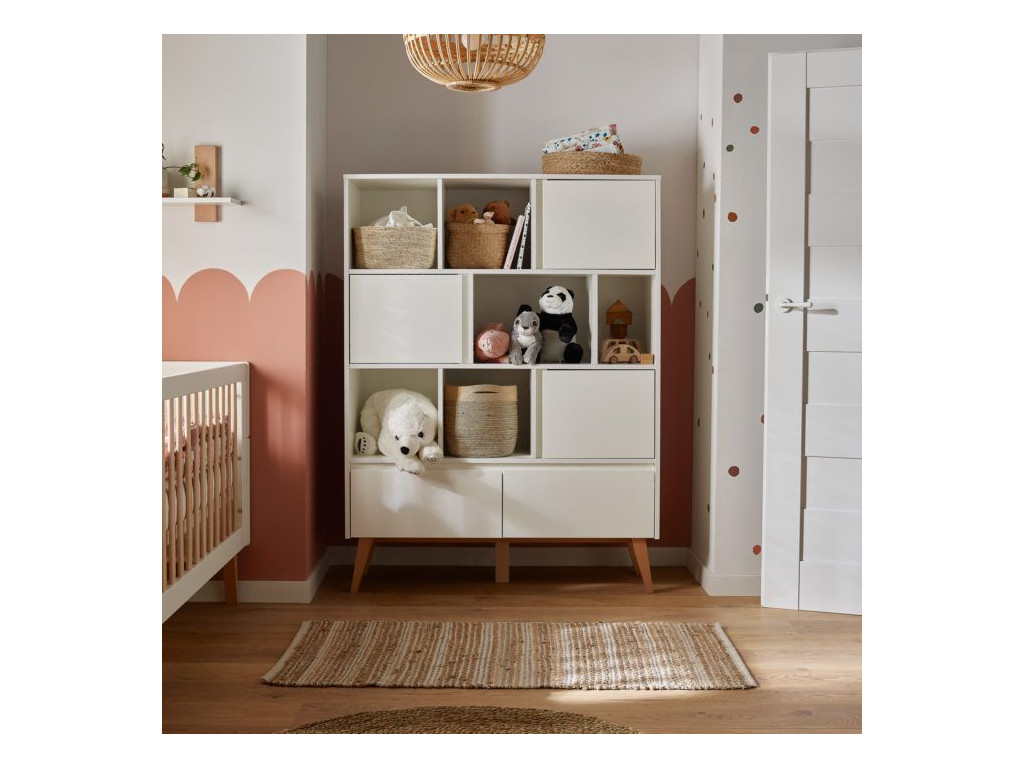 Regál z kolekcie Swing ponúka dostatok priestoru na odloženie hračiek a kníh. Vďaka dodatočným dvierkam, viete police využiť aj ako skrinku na oblečenie. Dvierka obsahujú aj kovanie.