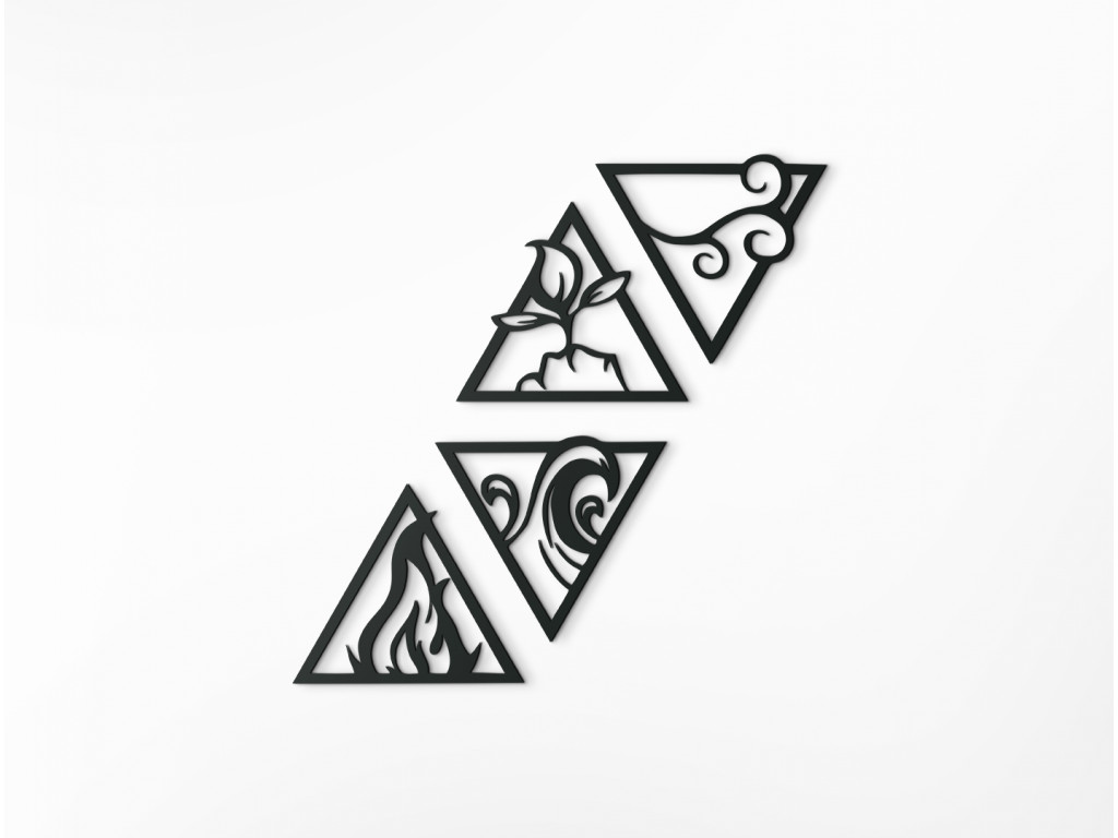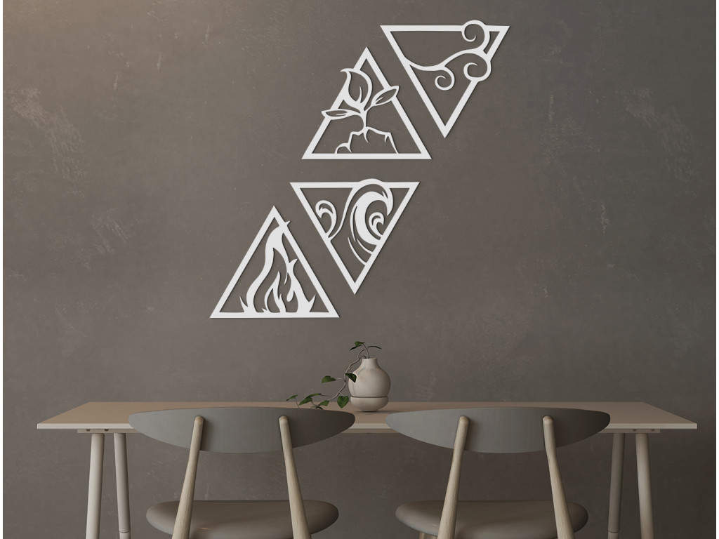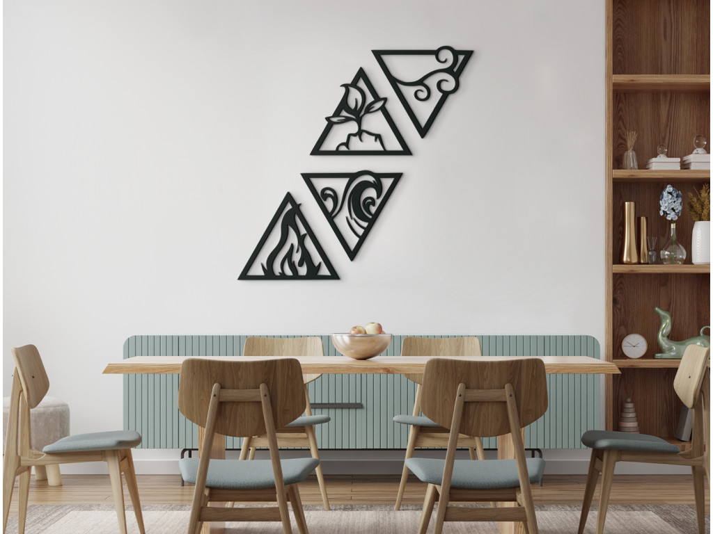 4 živly na drevenej nálepke vnesú do miestnosti originálny dizajn. Nálepky v tvare trojuholníkov môžete nalepiť smerom do výšky aj do šírky. Hodia sa do moderného interiéru do obývačky, chodby, jedálne aj kancelárie.