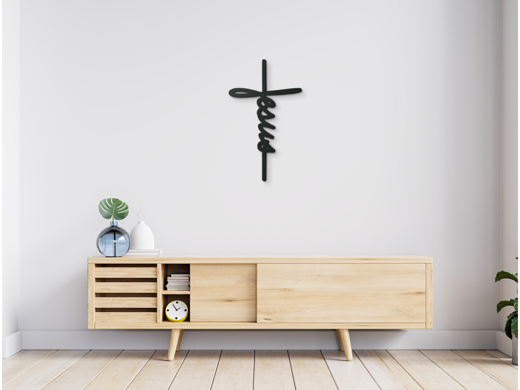Kríž na stenu s nápisom Jesus je mocným symbolom viery a lásky, ktorý vnesie do vášho domova jedinečný duchovný rozmer a pokojnú atmosféru. Zvoľte si farbu tejto úžasnej dekorácie pre každý domov.