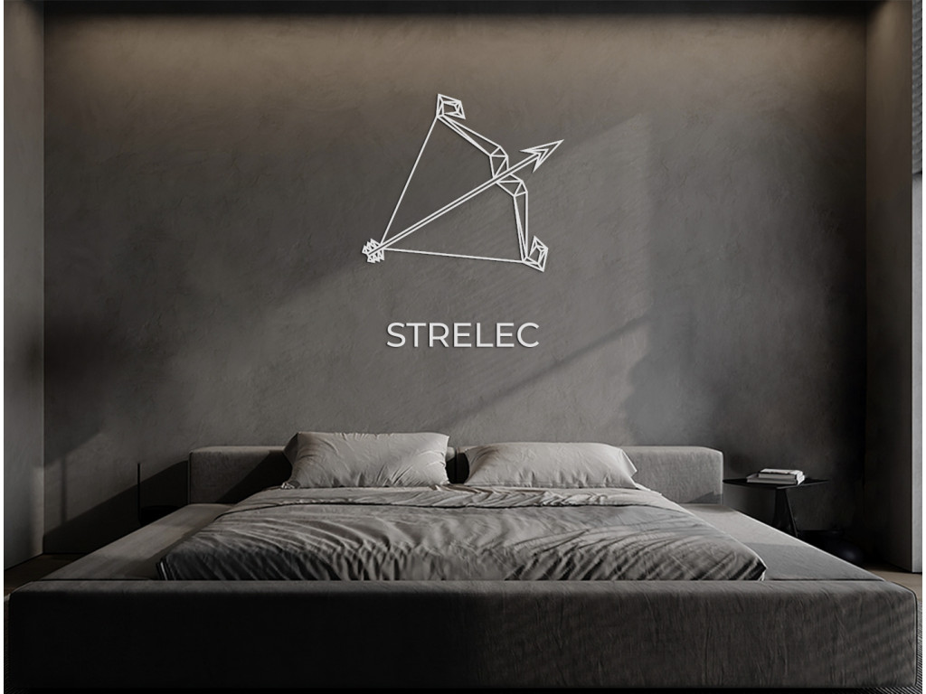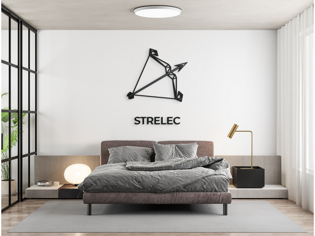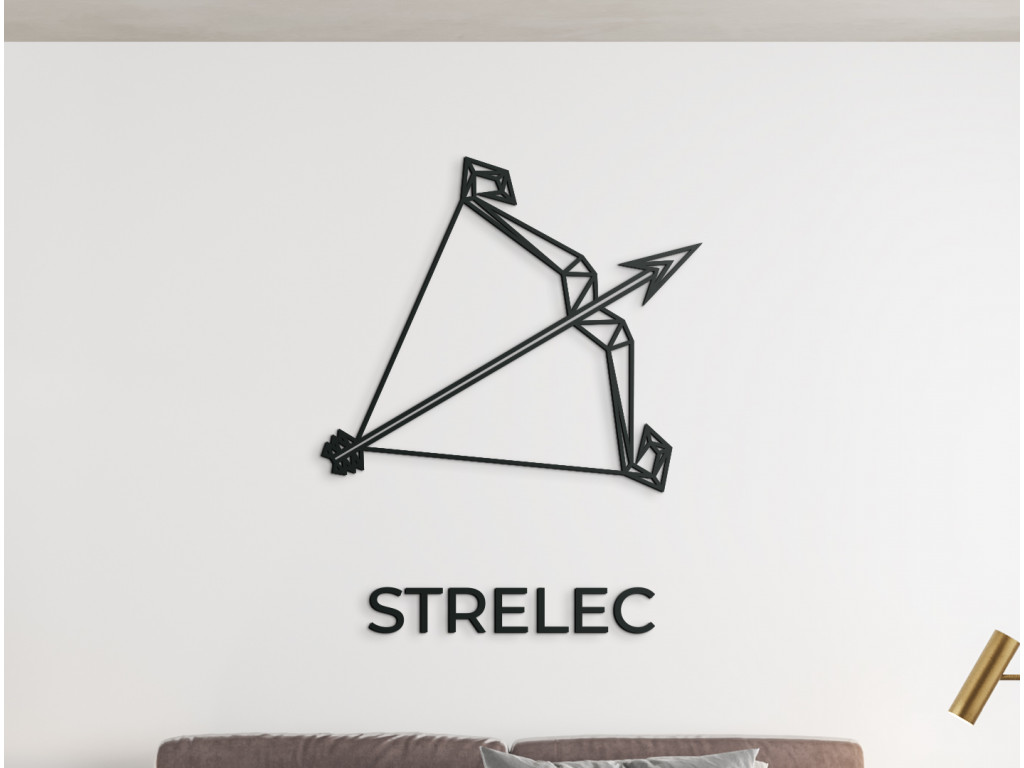 Polygonálna nálepka na stenu Strelec vynikne v modernom interiéri. Hodí sa do kancelárie, spálne, obývačky aj chodby. Znamenie Strelec je krásnou bytovou dekoráciou do moderných interiérov. Zavesiť ho môžete nad posteľ, gauč či komodu.