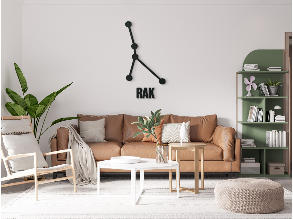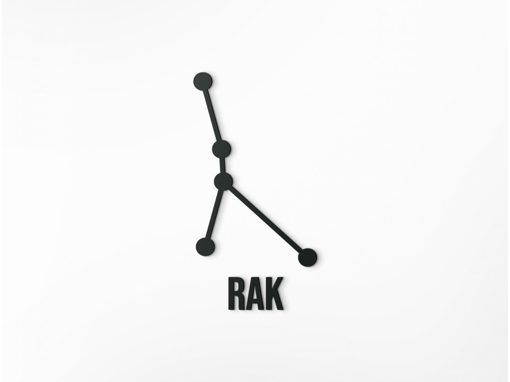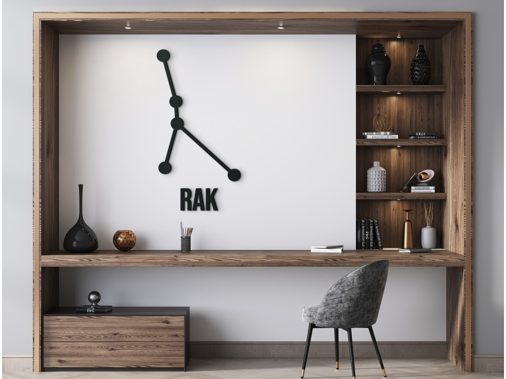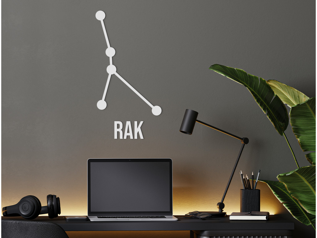 Rak patrí medzi súhvezdia zvieratníka. Ak si ho ale zavesíte na stenu do svojho interiéru, zvýrazníte tak moderný dizajn vášho štýlu zariadenia. Nálepka je dodávaná vrátane názvu Rak, ktorý si môžete zavesiť k súhvezdiu alebo osobitne podľa uváženia.