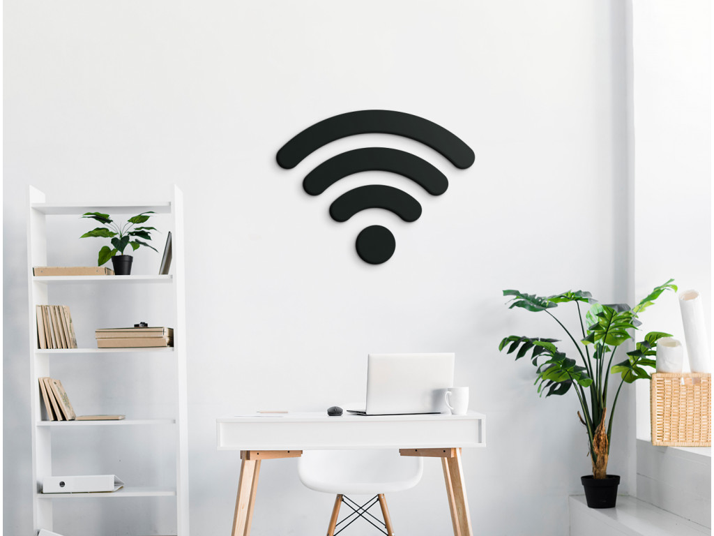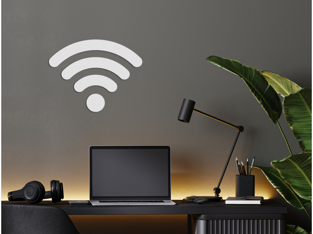 Symbol Wifi, vyrobený z kvalitného materiálu, zreteľne označuje miesto s dostupným pripojením na internet. Nálepka Wifi je vyrobená z dreveného materiálu s 3D efektom.