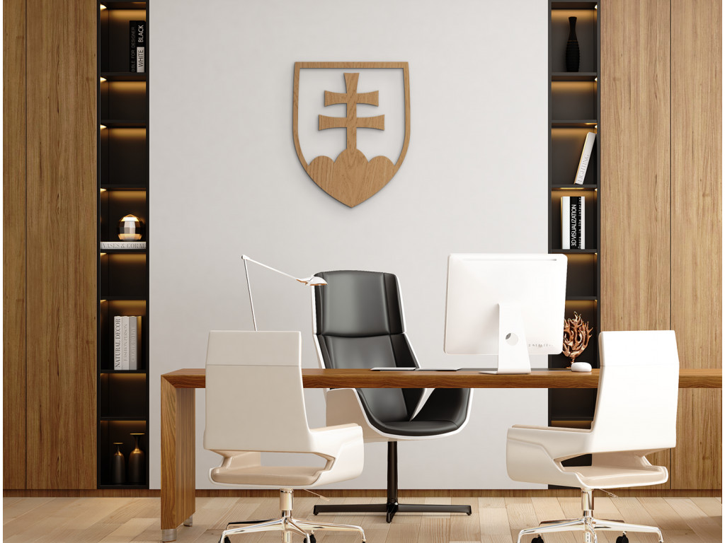 Pracujete v kancelárii, ktorá má prázdnu stenu? Drevená nálepka štátneho znaku Slovenskej republiky je elegantným a trvácnym spôsobom, ako skrášliť prázdnu stenu, ale takisto aj ako prejaviť hrdosť na svoju krajinu.
