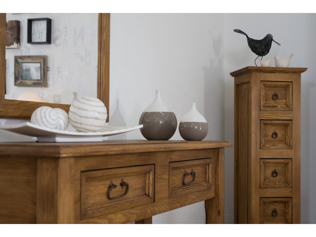 Kozmetický stolík zmasívneho borovicového dreva môžete využiť ako miesto pre vaše každodenné skrášľovacie rituály alebo aj ako odkladací konzolový stolík do predsiene. Toaletný stolík má 2 zásuvky, ktoré vám poskytnú úložný priestor a zlepšia organizáciu vášho domova.