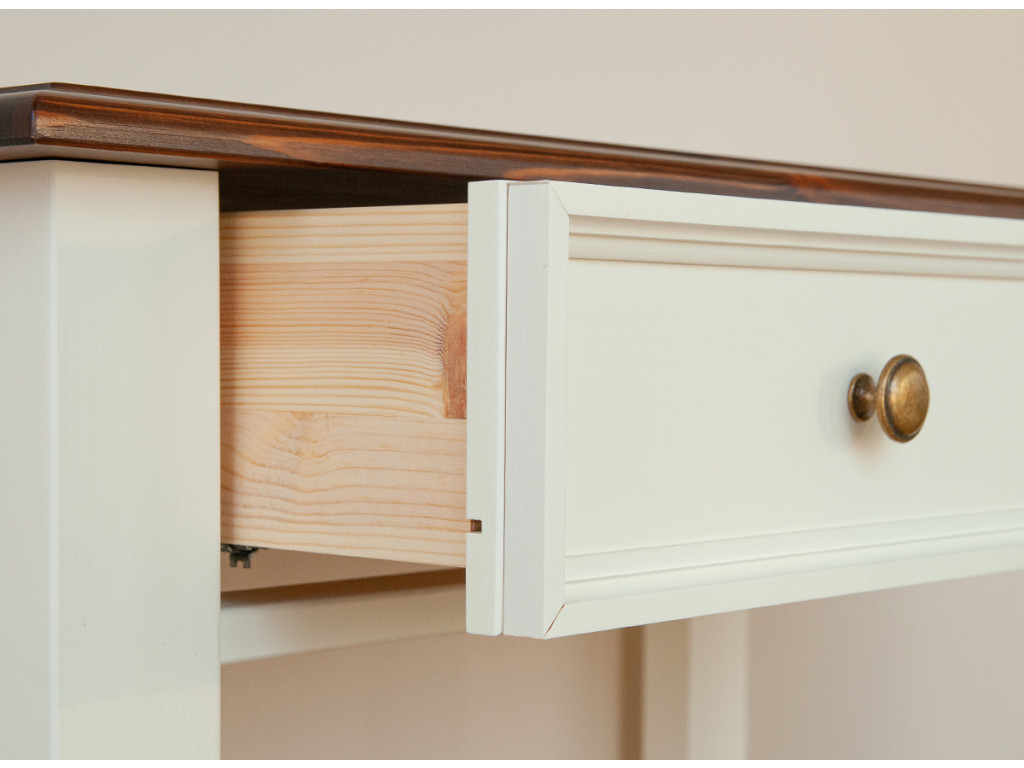 Jemný, praktický a kvalitný. Hovoríme o kozmetickom stolíku z masívu borovice, ktorý sa vďaka jeho rozmerom šikovne zmestí do každej spálne či predsiene. Je vyrobený z masívnej borovice a vybavený veľkou zásuvkou.