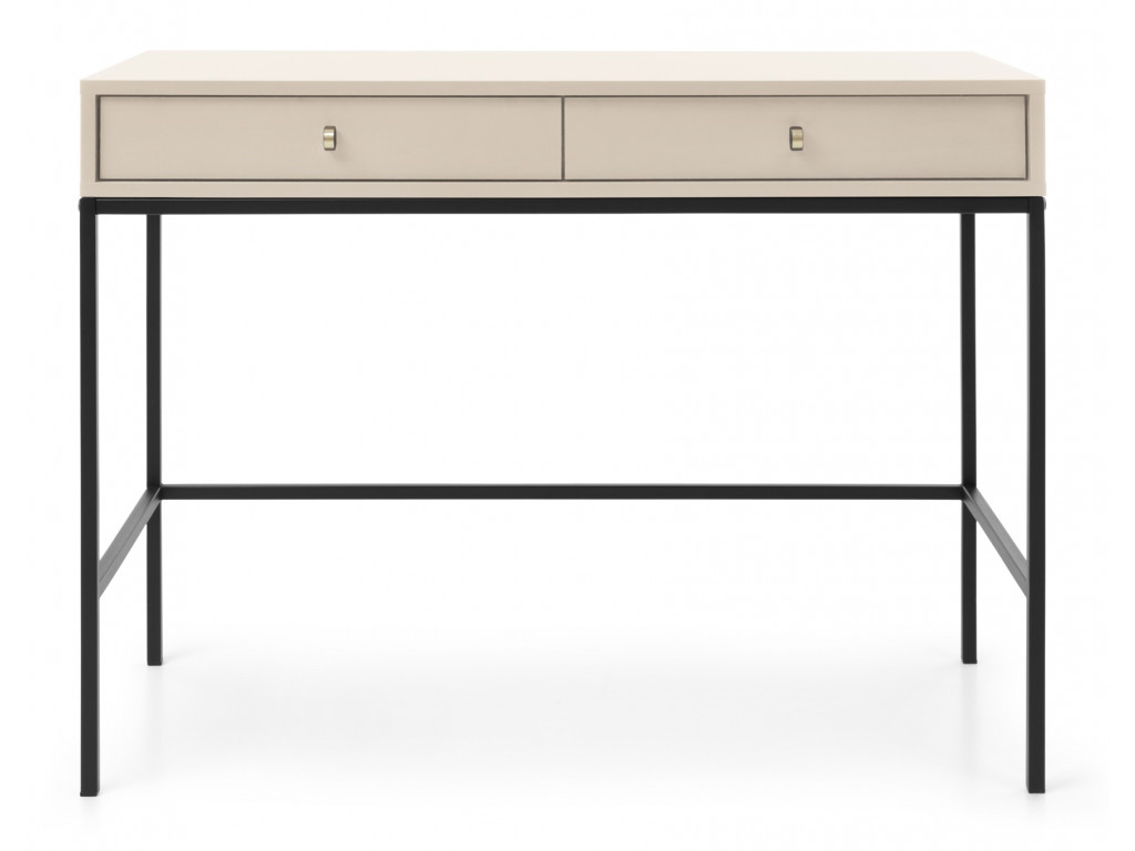 Béžový toaletný stolík Mono sa hodí predovšetkým do moderných loftových spální. Pevný kovový podstavec mu zaisťuje potrebnú stabilitu a dve priestranné zásuvky ponúkajú dostatok miesta na toaletné potreby.