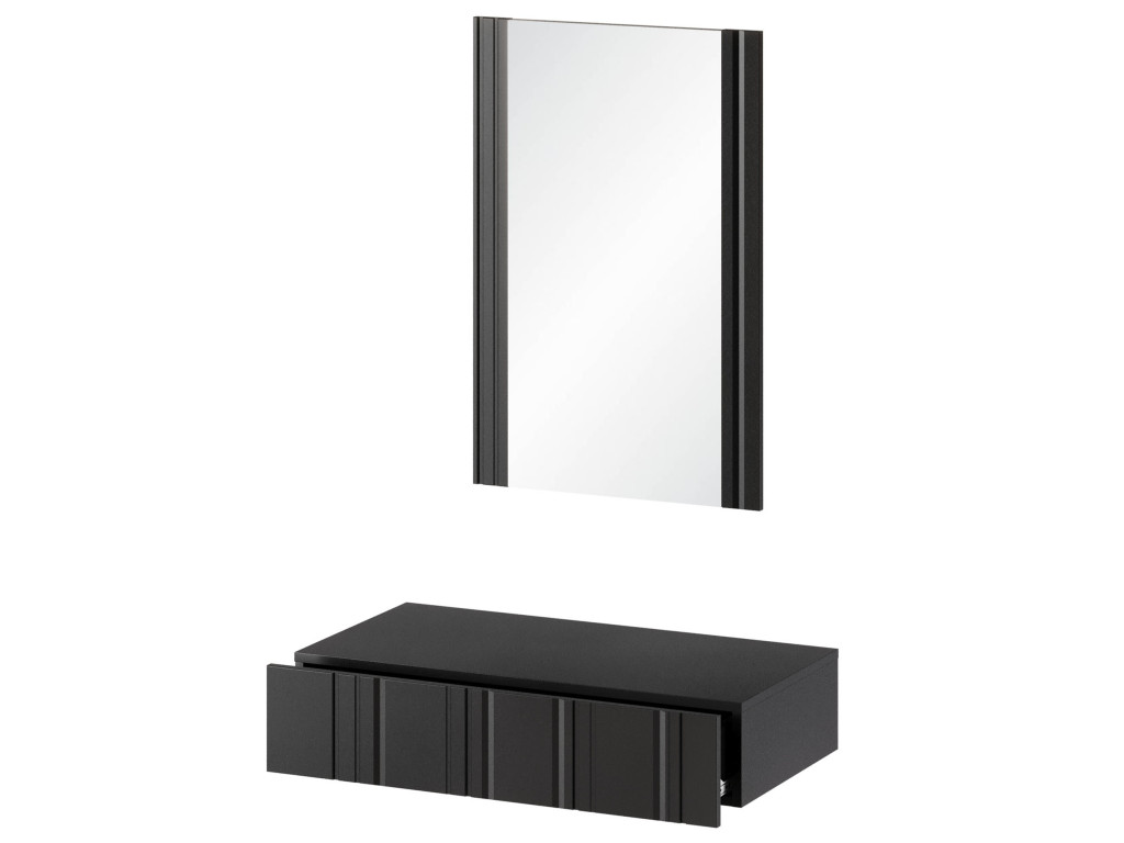 Čierny závesný toaletný stolík Isla so zrkadlom 53 × 79,3 cm a rozmermi 80 × 41,6 × 17,2 cm pôsobí moderne a minimalisticky. Praktická zásuvka a závesná forma z neho robia ideálny doplnok aj do menších miestností.