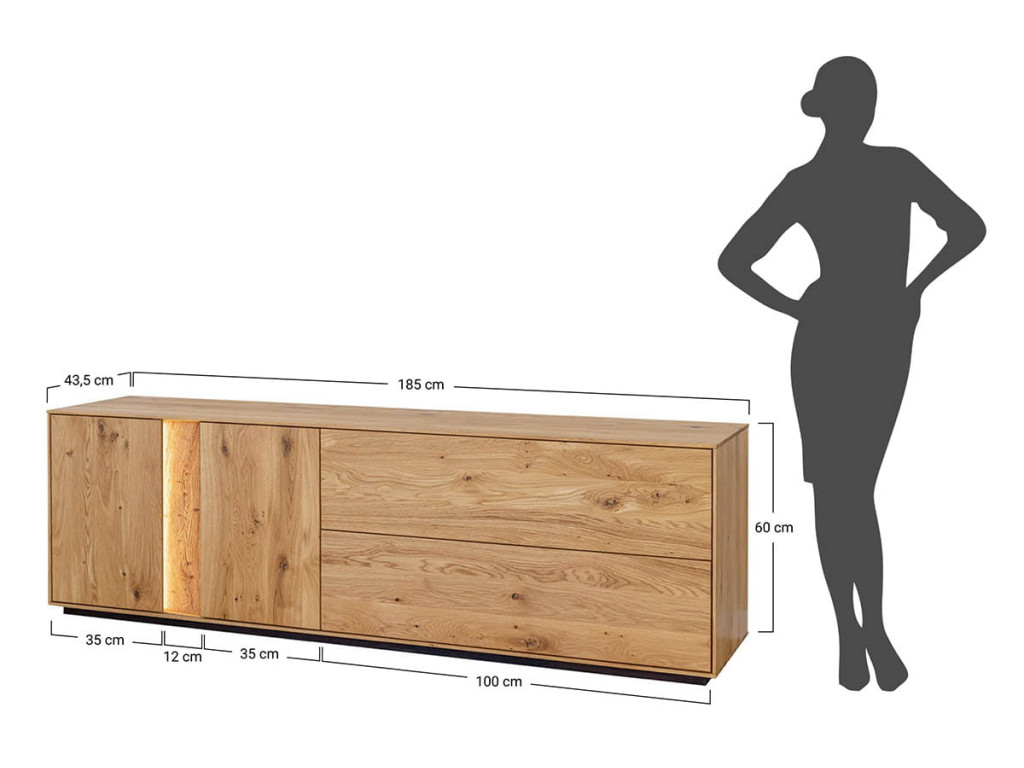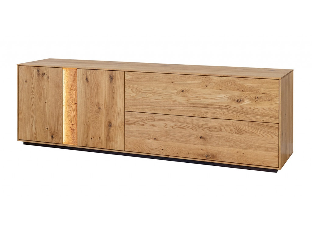 Vyberte si masívny dubový stolík pod TV z kolekcie Collodi. Je vyrobený z prírodného dreva, na povrchu ošetrený olejom, takže ešte väčšmi vynikne jeho naturálny charakter a teplé zlaté odtiene. Zároveň je tak drevo chránené pred poškodením pri jeho každodennom používaní. Pritom je každý kus nábytku jedinečný, keďže každý má iné letokruhy, uzly a štruktúru. Tento prirodzený vzhľad dreva je ešte podčiarknutý doplnkovým svetlom.