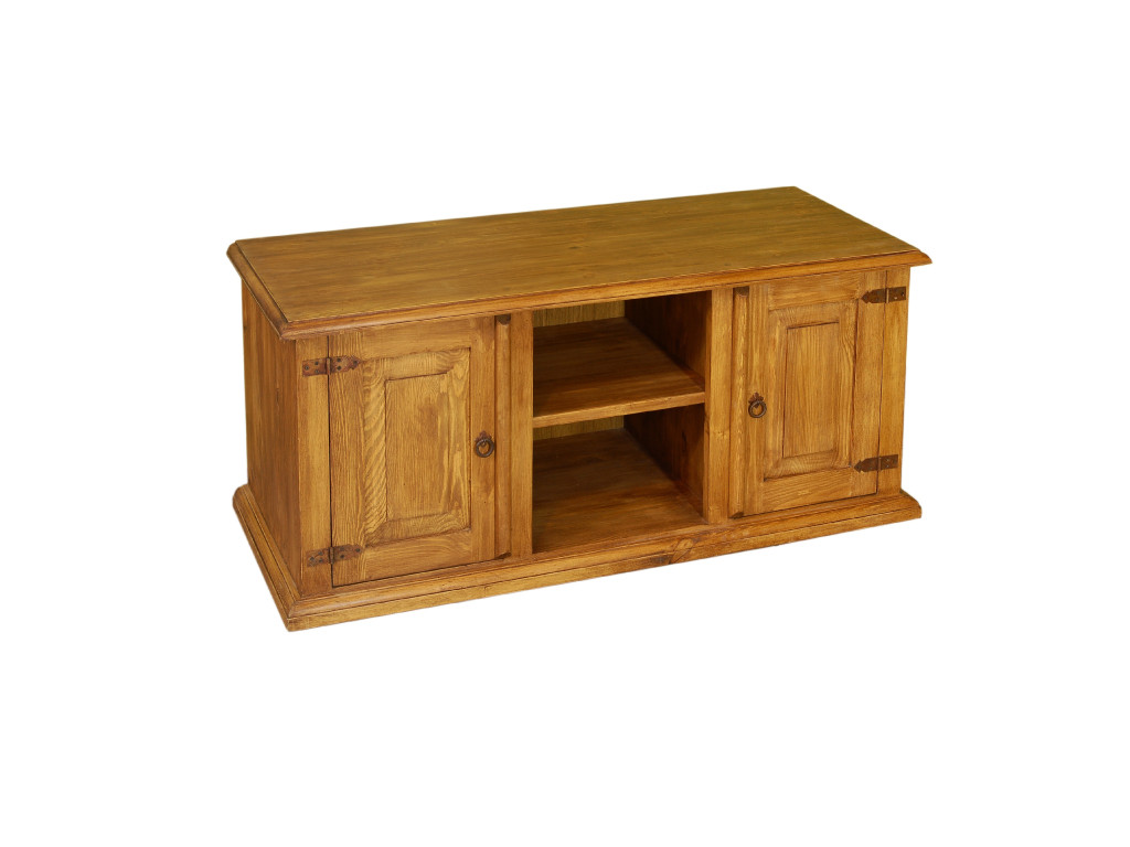 Masívny TV stolík z borovice bude nielen praktickou, ale aj dizajnovou súčasťou vašej rutiskálnej obývačky. Po stranách má 2 dvierka a poličky, ktoré poskytnú dostatok miesta na uschovanie príslušenstva a elektroniky. Povrchovú úpravu si môžete prispôsobiť podľa predstáv.