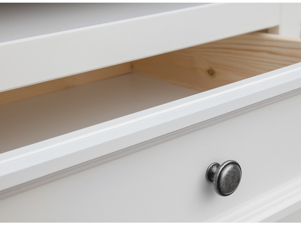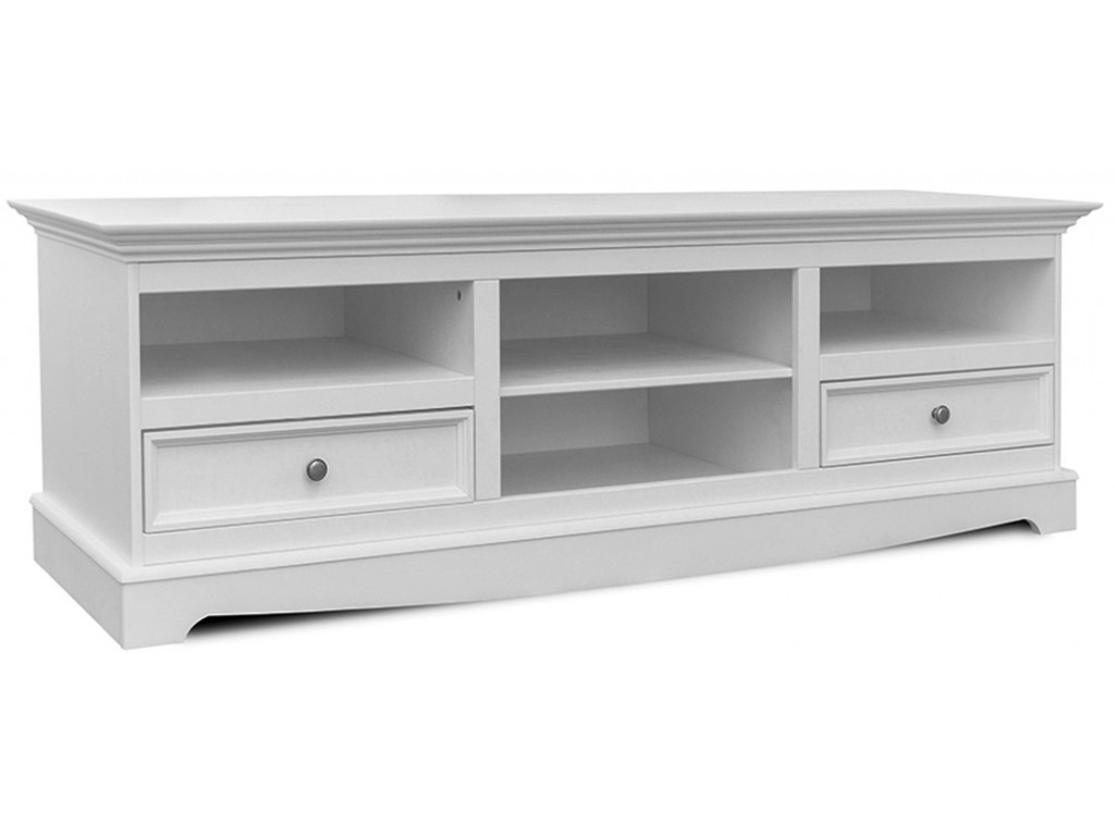Hľadáte stolík pod televízor? Biely televízny stolík je nielen funkčným kusom nábytku na ktorý môžete televízor položiť, ale aj niečím, čo dodá vášmu interiéru klasický vzhľad. Má 4 otvorené police, ktoré sú vhodné pre konzolu alebo prehrávač.