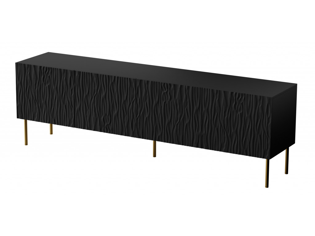 Tento elegantný TV stolík do obývačke zapadne do každého interiéru ako uliaty. Je vyrobený v čiernej farbe v kombinácií s dizajnovým frézovaním. Disponuje 6 policami so systémom otvárania Push to Open, do ktorých vložíte rôzne predmety a dokumenty.