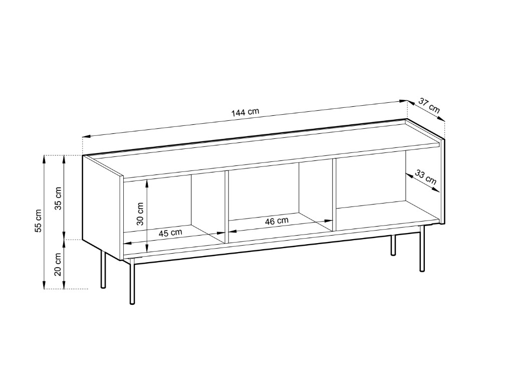 - Materiál: 16 mm hrubá laminovaná doska, zadná stena z 3 mm hrubej HDF dosky.