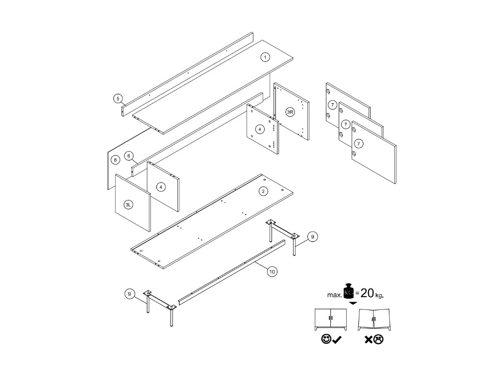 Nábytok je dodávaný v balíkoch pre svojpomocnú montáž. Podrobný montážny návod je súčasťou balenia spolu so zariadením.