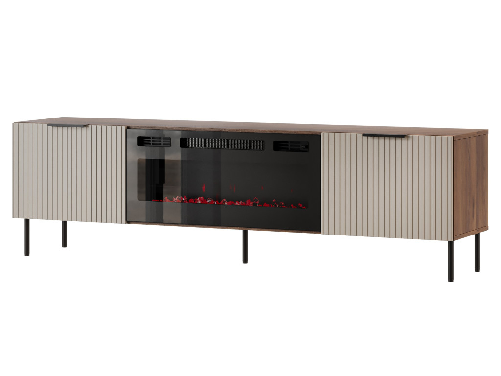 TV stolík Almera 6 s elektrickým LED krbom – béžová / orech