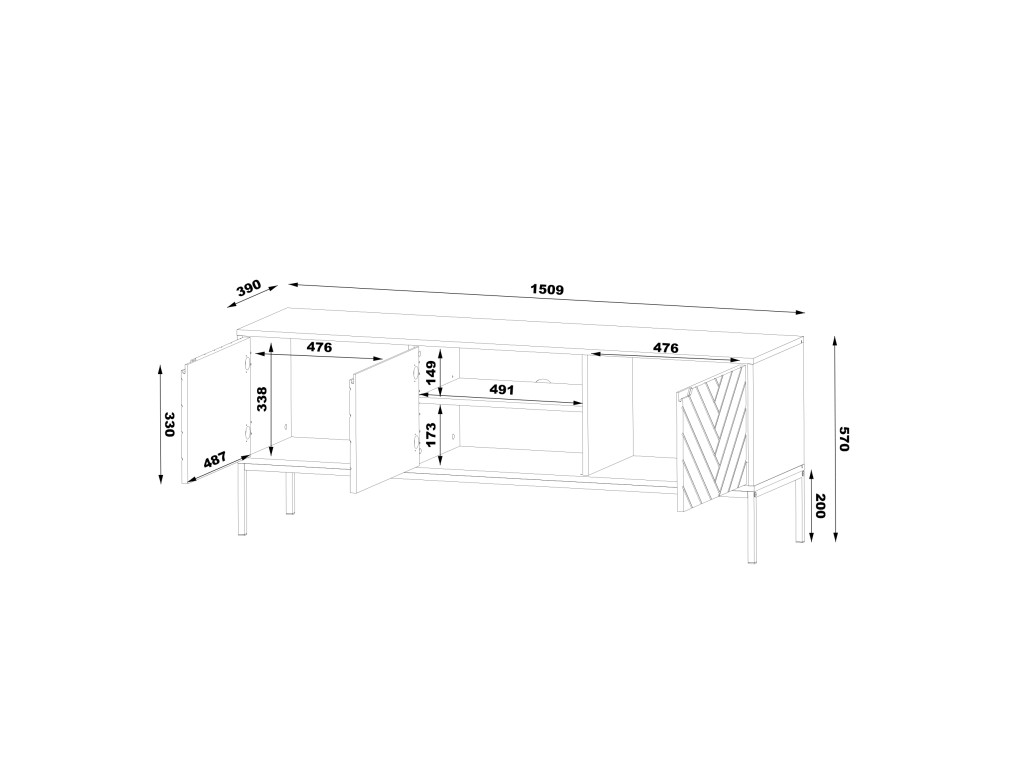 Vďaka šírke 151 cm je tento TV stolík nielen estetickým, ale aj praktickým doplnkom do každej obývačky.