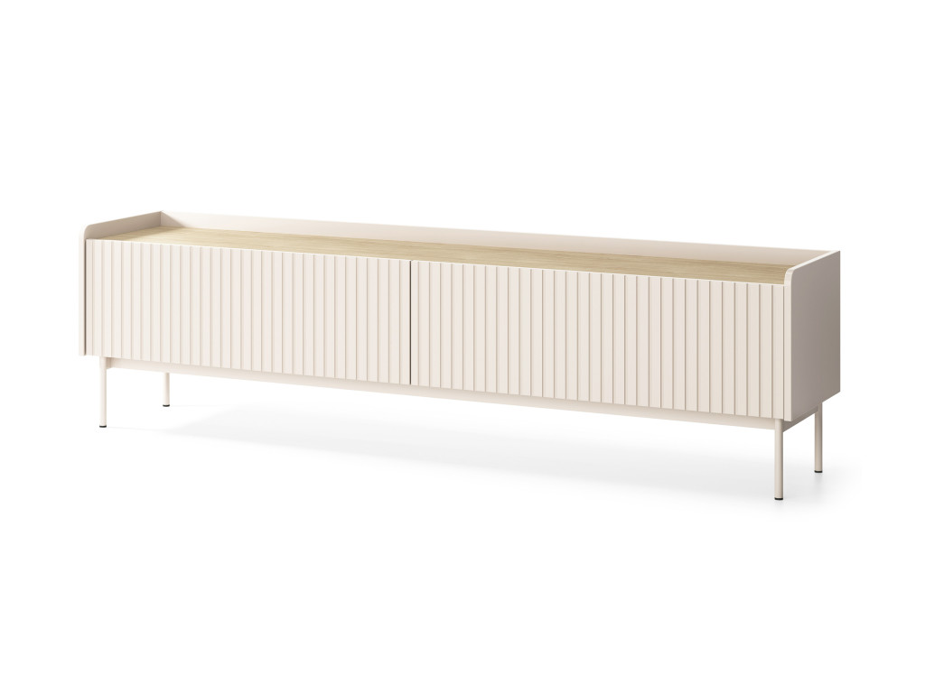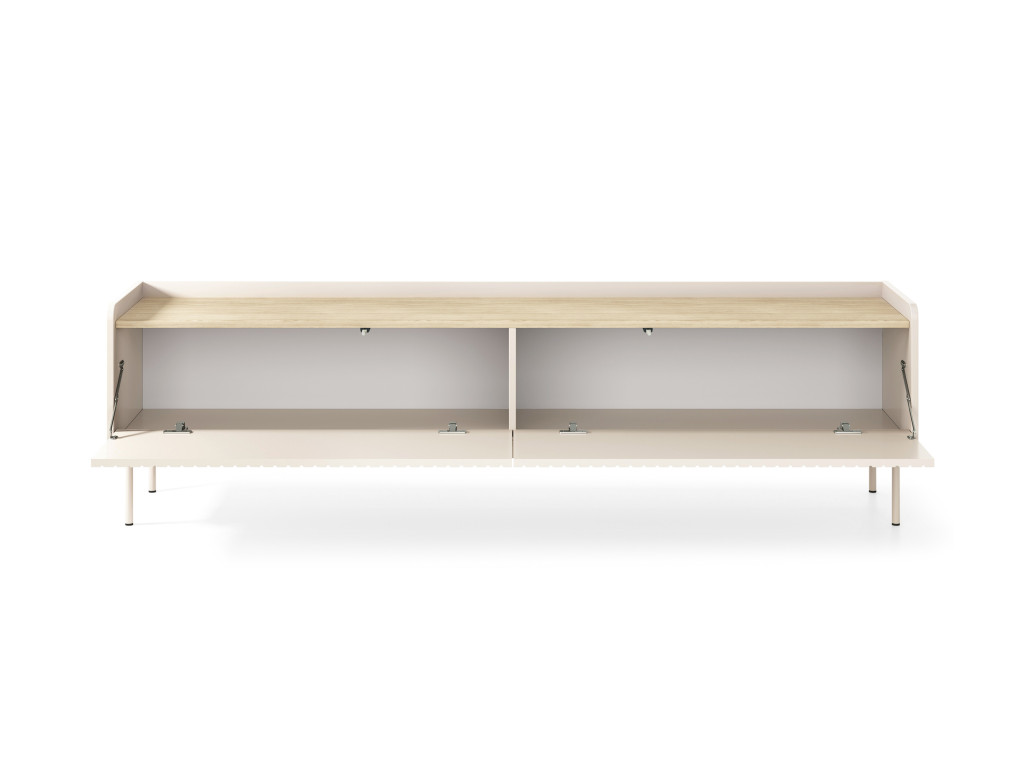 Elegantný TV stolík z kolekcie nábytku Level dokonale kombinuje moderný dizajn s praktickosťou. Vďaka farebnému prevedeniu béžovej farby a dekoru dub scandi zapadne do každej obývačky.