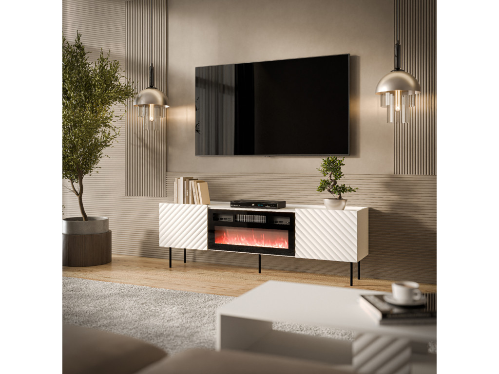 TV stolík Lucia 180 s krbom - biela