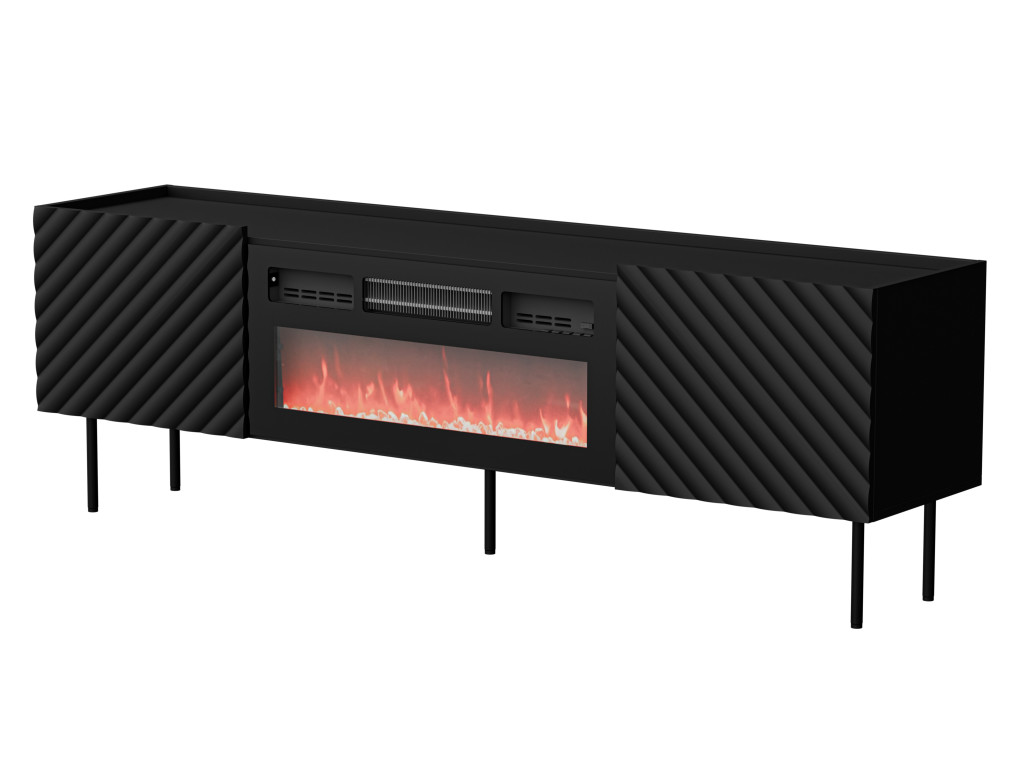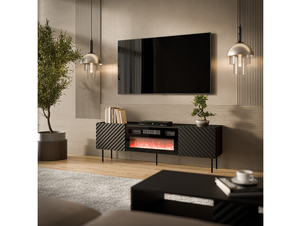 TV stolík Lucia 180 je kompaktný a praktický kúsok s úložným priestorom za dvierkami. Integrovaný elektrický LED krb dodáva interiéru útulnú atmosféru, vďaka čomu je stolík ideálny do menších obývačiek, bytov či izieb pre hostí.
