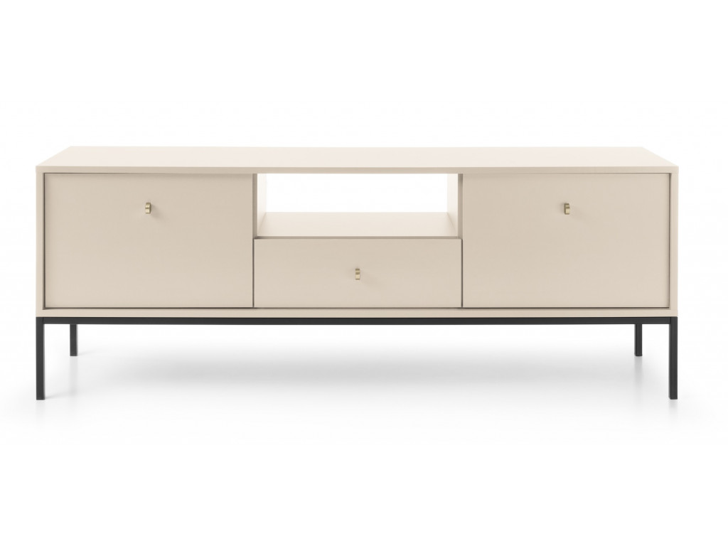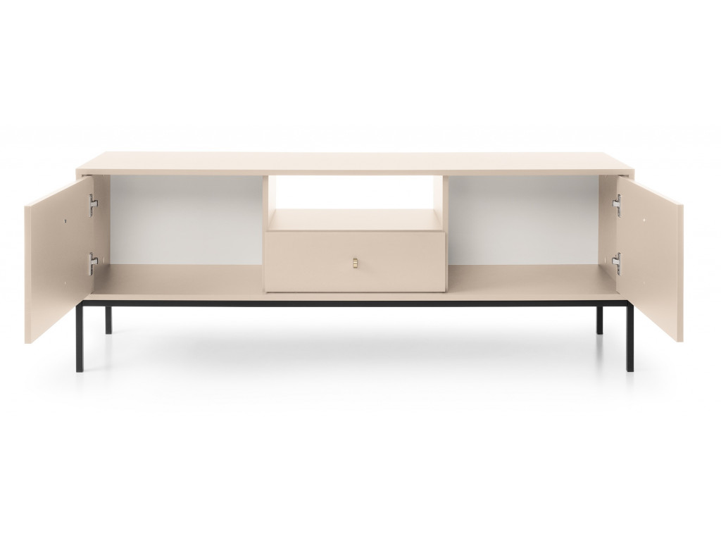 Postavte si do obývačky netradičný TV stolík béžovej farby s dvomi priestrannými skrinkami, jednou otvorenou policou a jednou zásuvkou. Neutrálna farba a moderný dizajn sa stanú dominantou celej miestnosti.