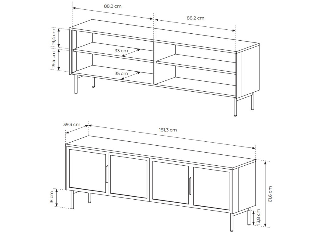 Kolekcia Lumus stavia na luxusnej kombinácii materiálov – laminovaná doska a rámové dvierka z MDF, doplnené o ornamentálne tvrdené sklo s jemným reliéfom. Všetko je premyslene zladené v odtieni béžovej kašmírovej farby, ktorý pôsobí nadčasovo a upokojujúco. Detaily ako zlaté kovové úchytky, metalické nožičky, kvalitné ABS hrany, plnovýsuvné zásuvky a decentné LED osvetlenie robia z kolekcie ideálnu voľbu pre elegantné a funkčné bývanie. TV stolík Lumus je ukážkou toho, ako možno spojiť štýl, praktickosť a jemnosť v jednom kuse nábytku.